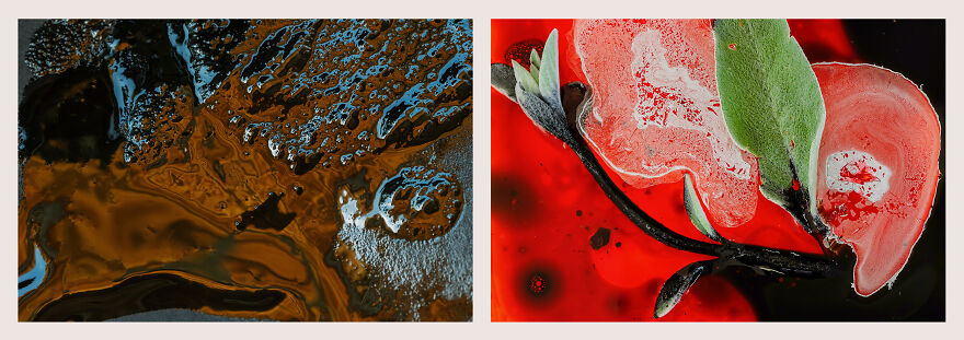 “This series of photographs is a way to convey the horror of the events taking place with the help of art installations from black-used engine oil. The series was created during the first days after the tragedy at the Kakhovka dam, which has been under occupation since the first day of Russia’s invasion of Ukraine. An ecological catastrophe, the scale of the consequences we can’t know today, and the whole world is unconscious. Life is the greatest value – both humans and the entire planet, every blade of grass on our earth.”