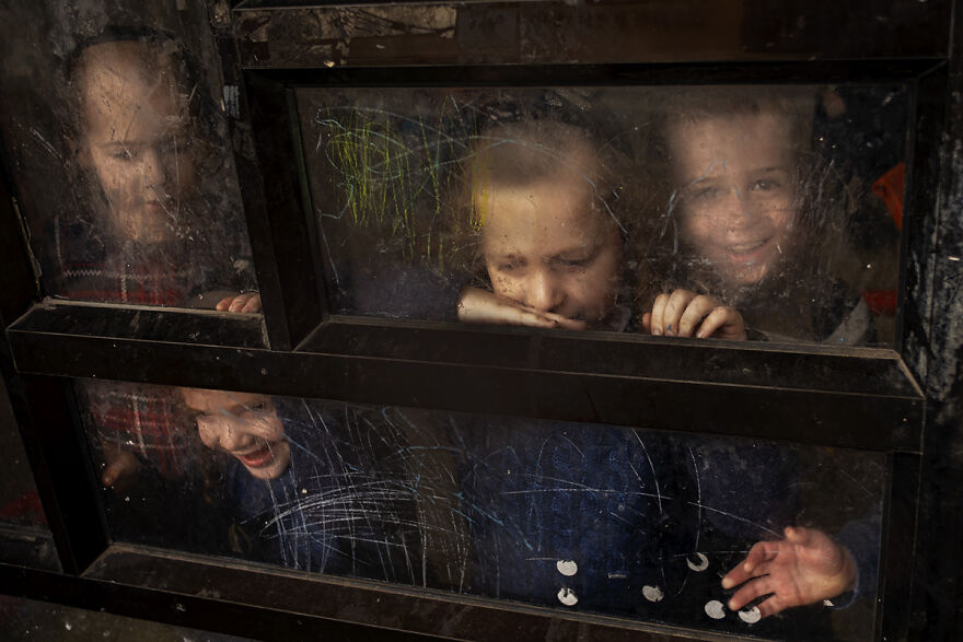 “Children looking through the glass”—Bnei Brak, Israel, 2000.