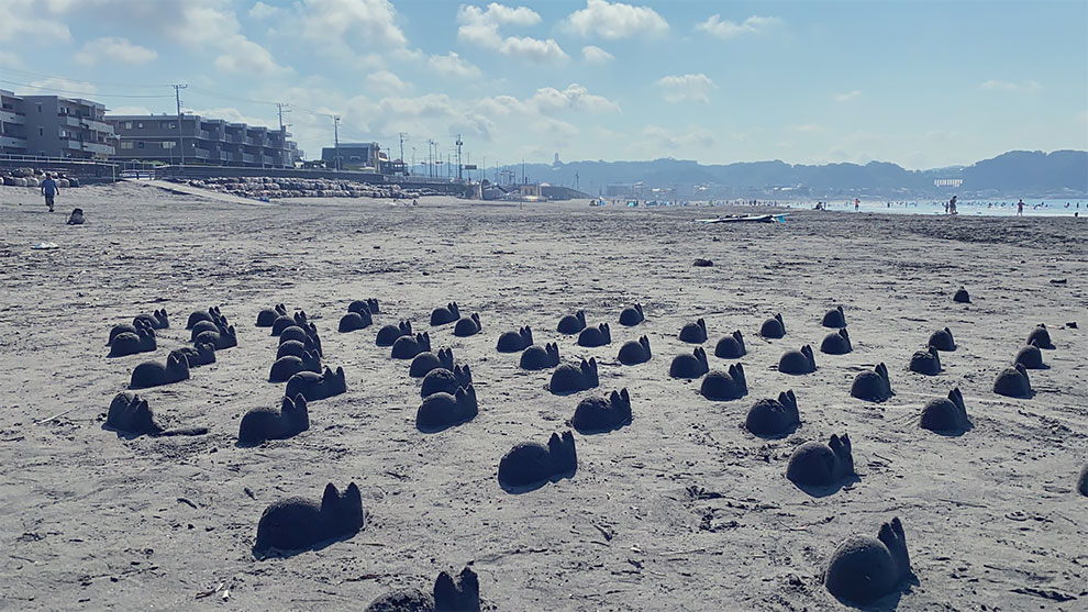 “At 5:30 this early morning, my wife abruptly woke me up and reported “we’re likely to the beach”, so we headed to Yuigahama. For the time getting I thought I’d sit and read through, so I pulled out a seaside chair and SHONAN TIME magazine to read. Then she shouted “look at this!”, and when I turned around a ton of cats experienced been born. It appears to be like she’s generating them into Yuigahama’s new landmark!”
