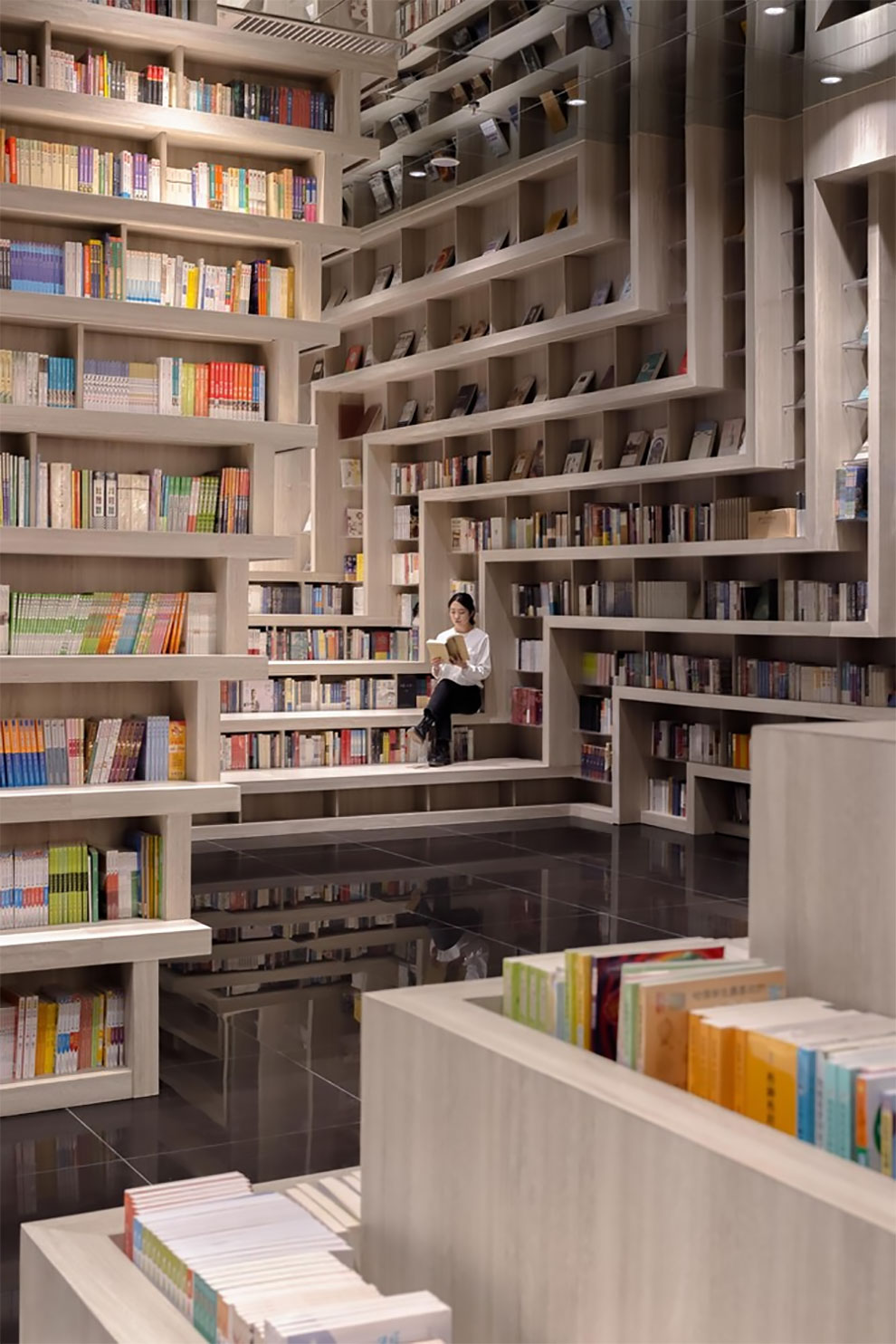 Just after the film, audiences can get a cup of incredibly hot drink in the café of Zhongshuge and have a chat about the movie they had been savoring. This is an exceptional soon after get together for film enthusiasts. Encouraged by the mountain surrounded local landscape, the designer made use of white triangular geometric designs to develop mountains and fashioned a cave filled with know-how.