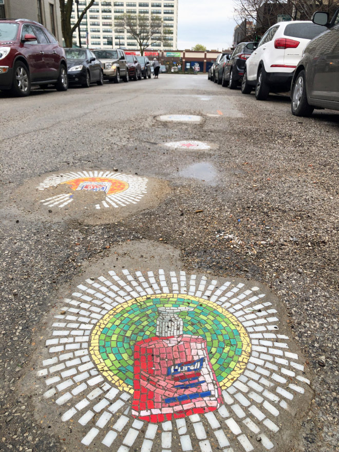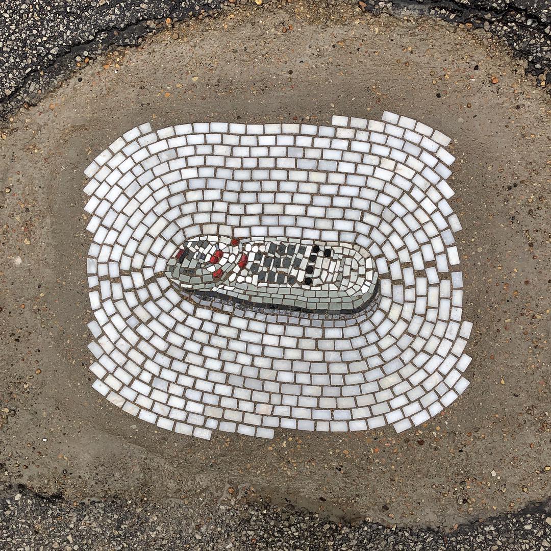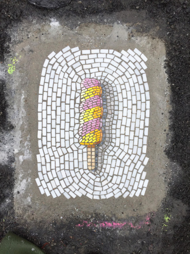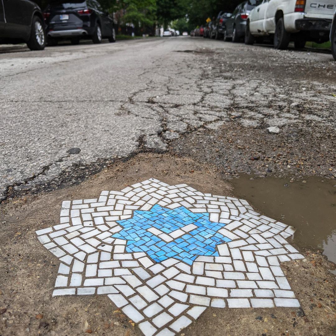 For several yrs Jim Bachor has fastened potholes in Chicago with playful mosaics. It is his own contribution to country’s infrastructure.