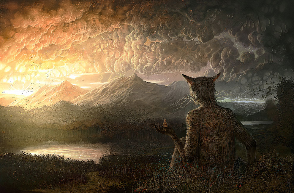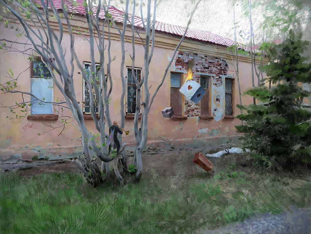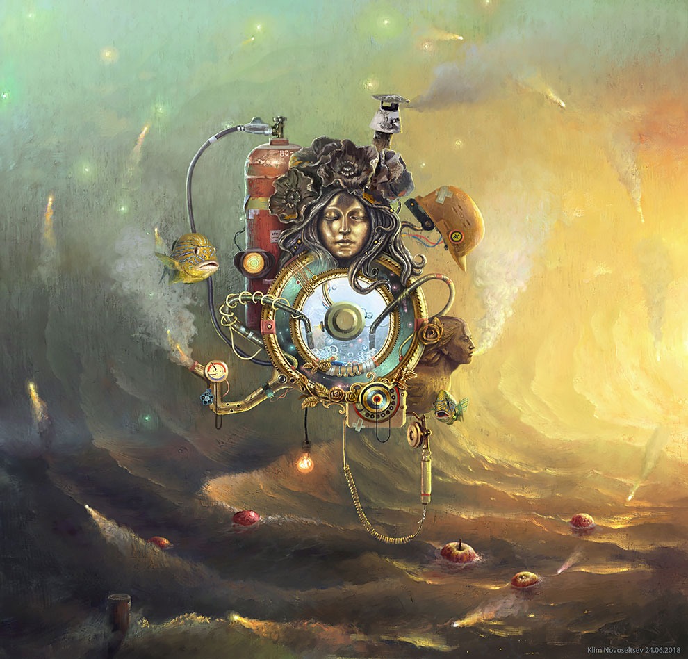 Klim Novoseltsev is an artist and musician originally from Kirovsk in the Murmansk region of Russia. He lives and works in St. Petersburg. His works are filled with the power of nature, sometimes animate or personified. There are references to biblical motifs, including eschatological ones, and, according to him, he does not like excessive esoterism in his work.
