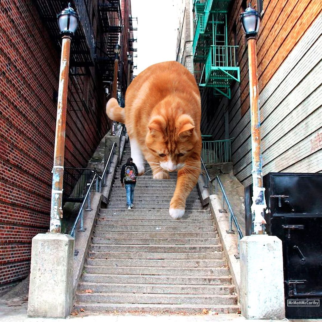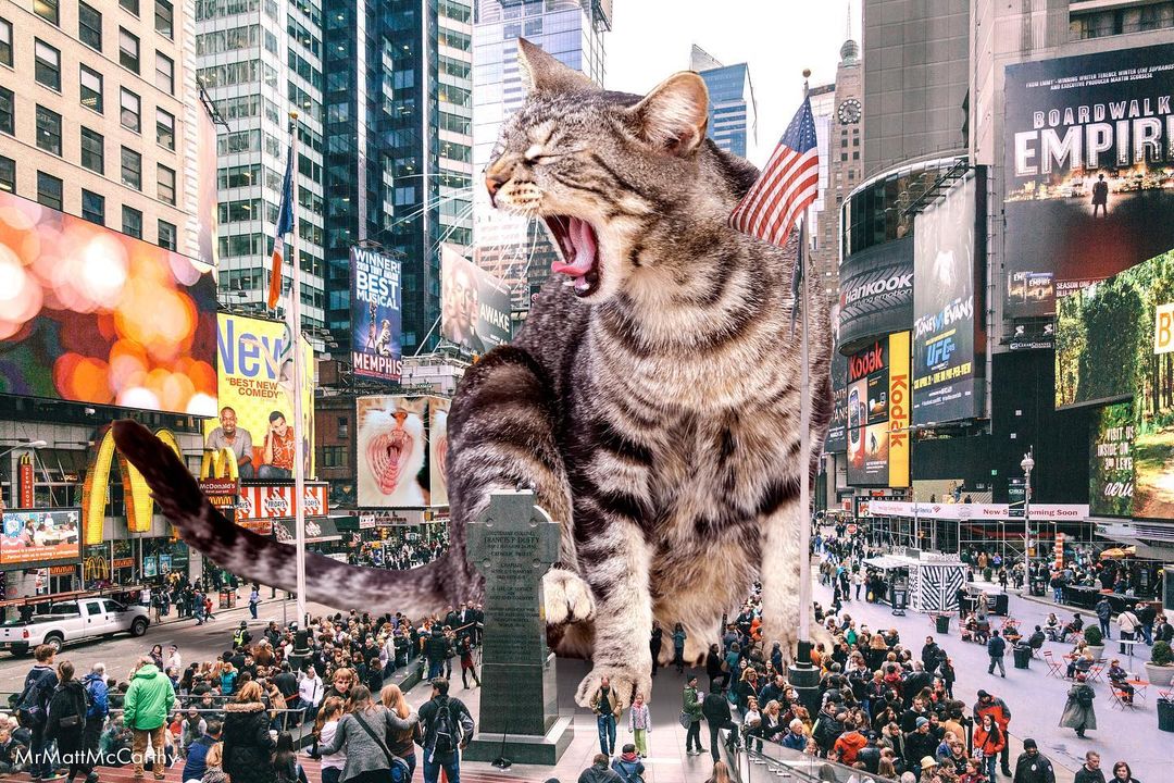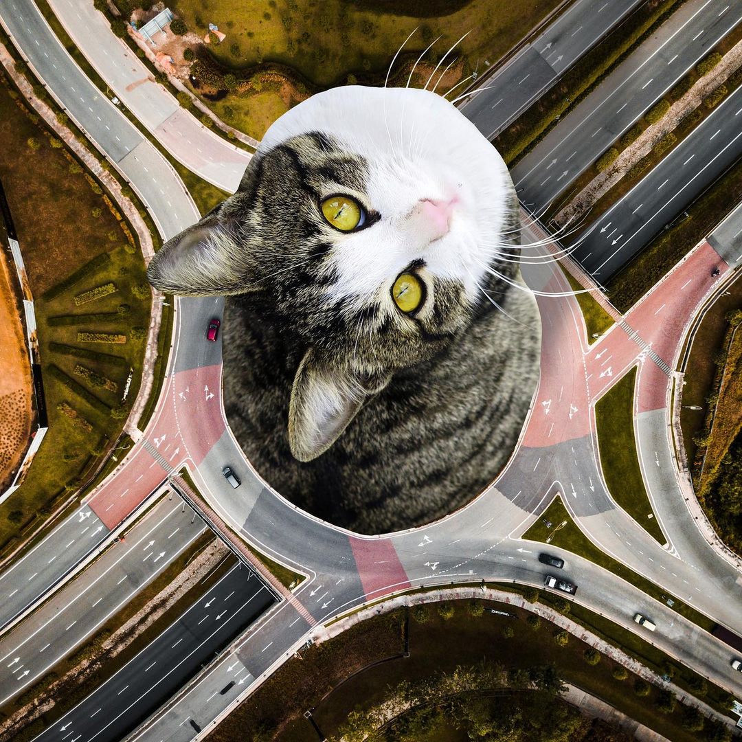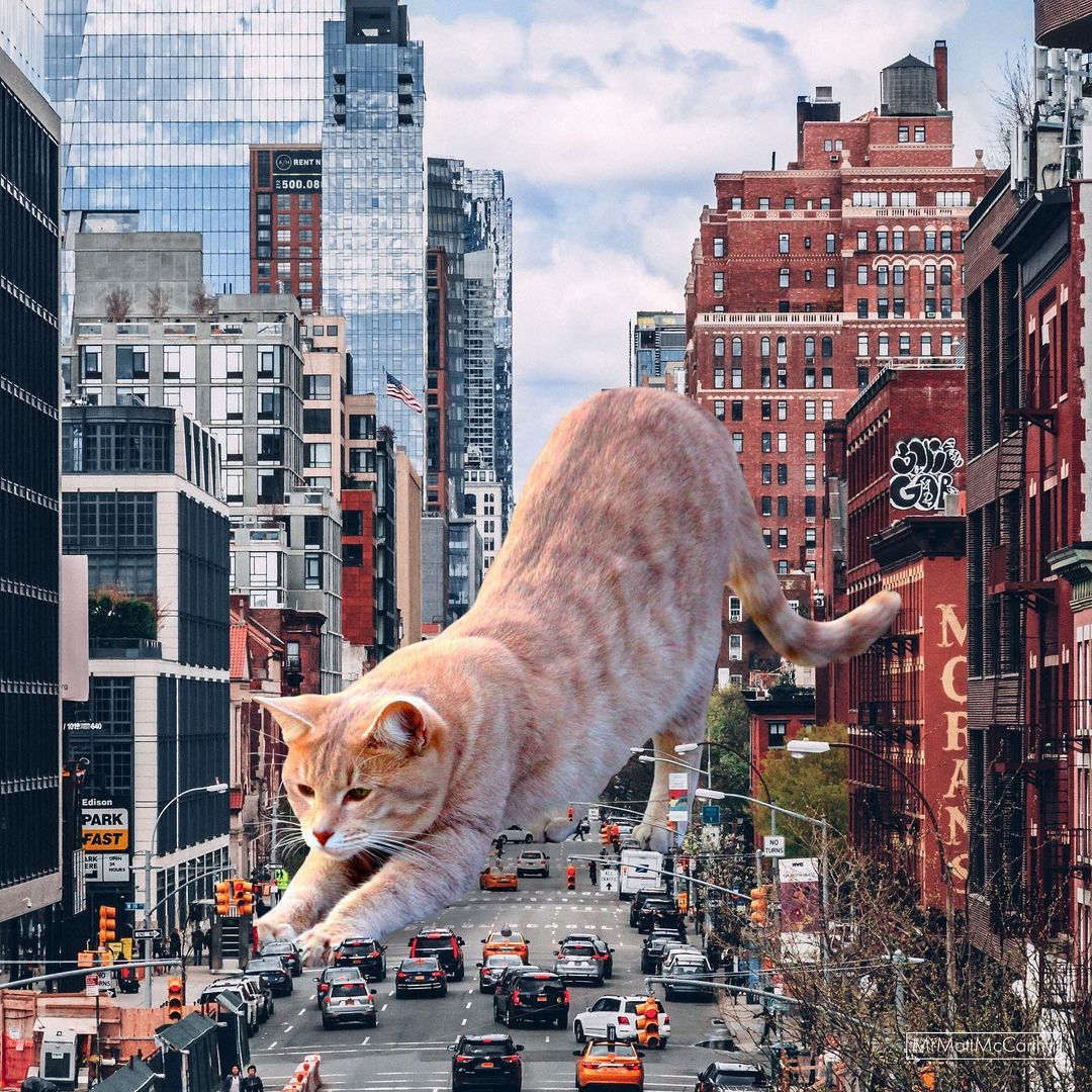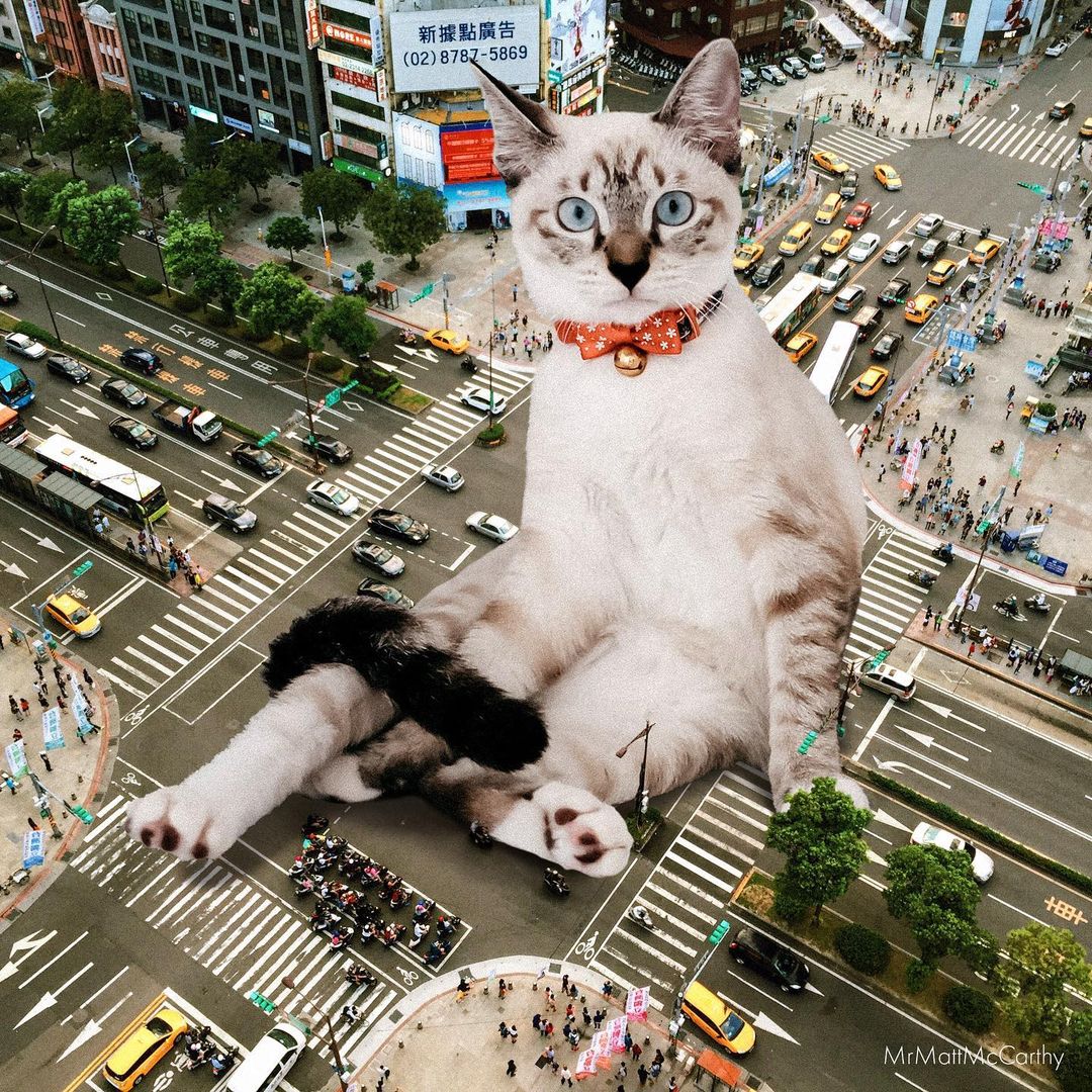 So what’s a better way to make use of this advanced technology if not making some well-loved cat edits? US-based artist Matt McCarthy did just that, combining the best of two worlds into his surrealistic giant cat images that have stolen the internet.
