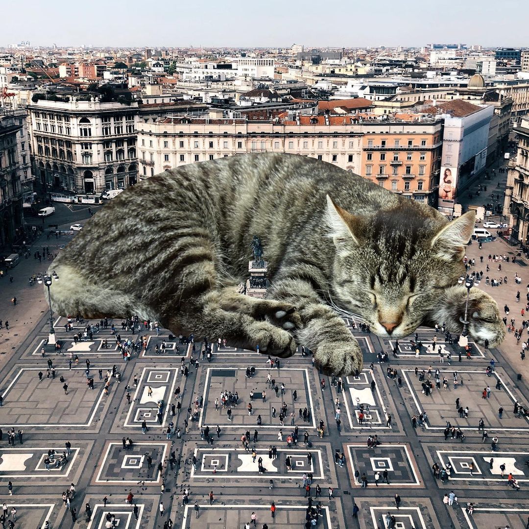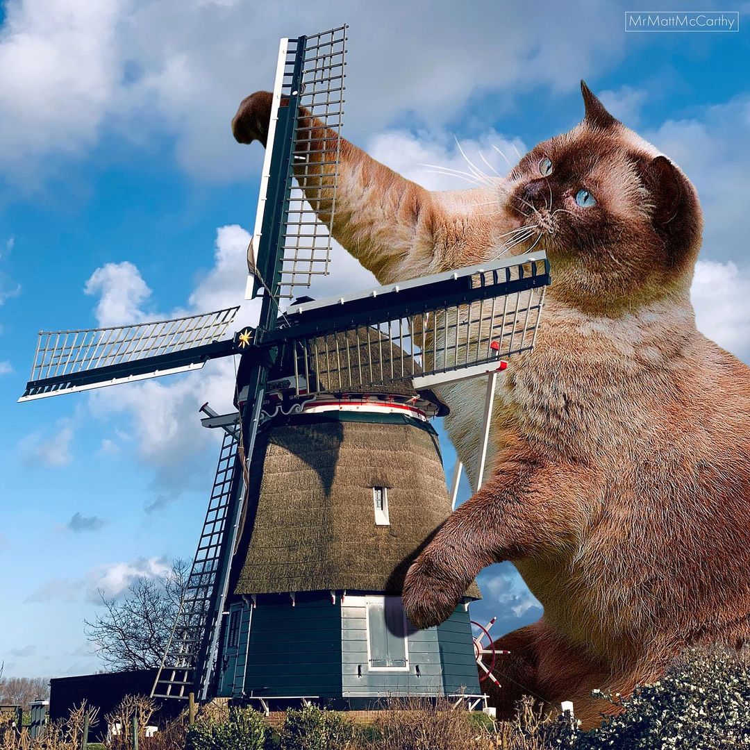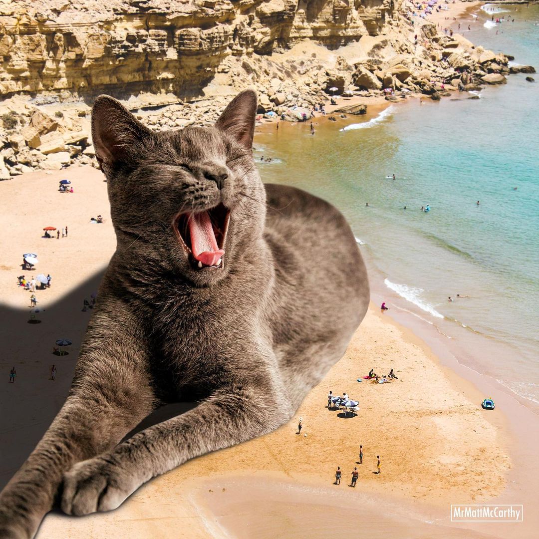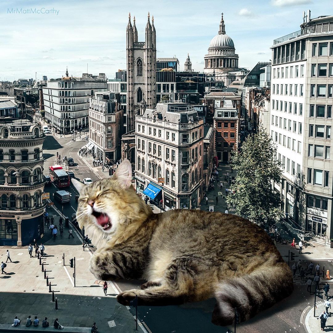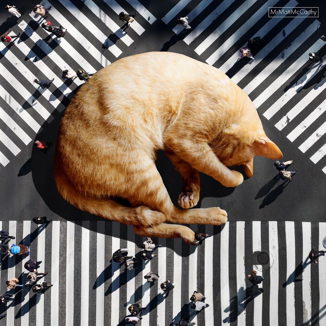 So what’s a better way to make use of this advanced technology if not making some well-loved cat edits? US-based artist Matt McCarthy did just that, combining the best of two worlds into his surrealistic giant cat images that have stolen the internet.