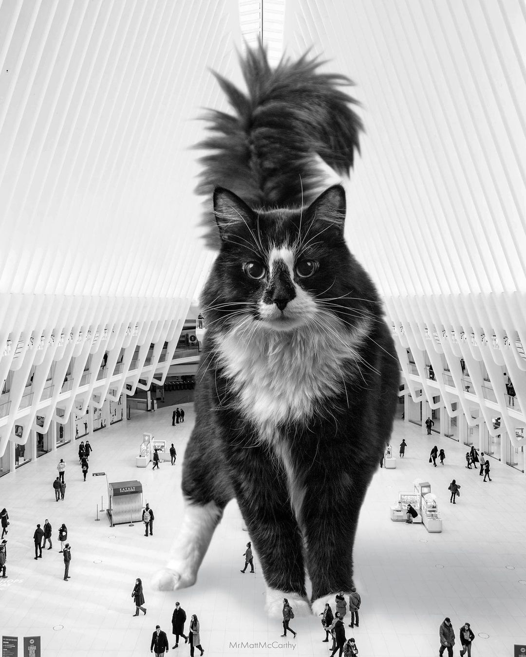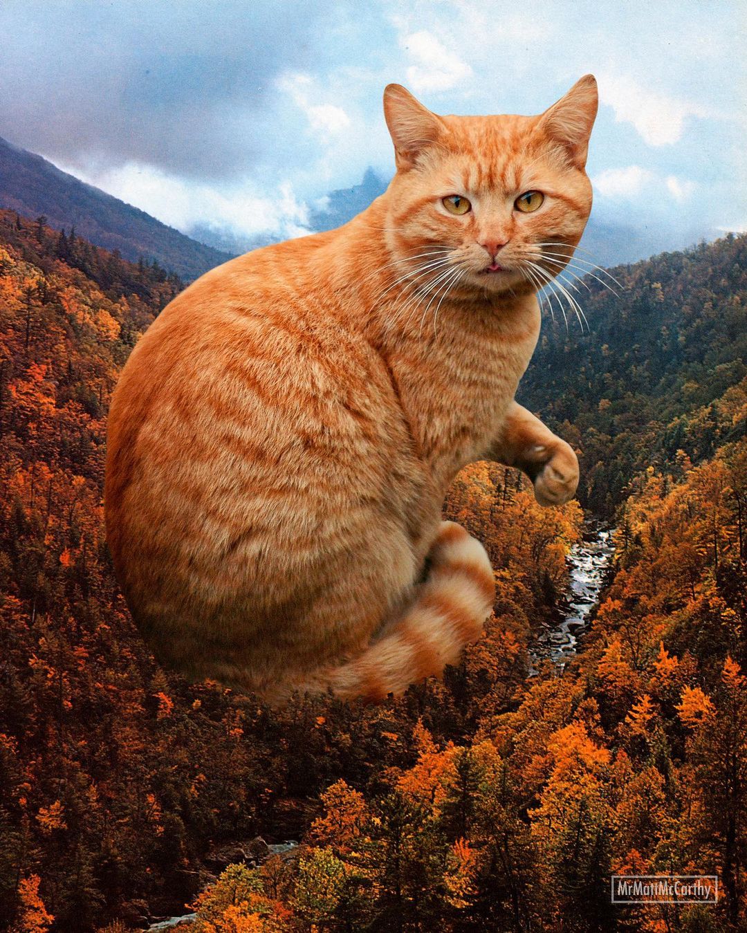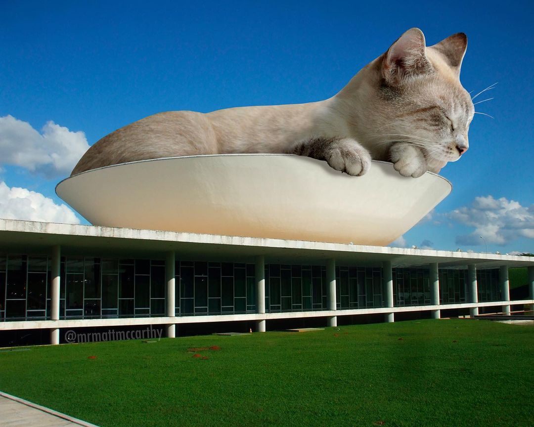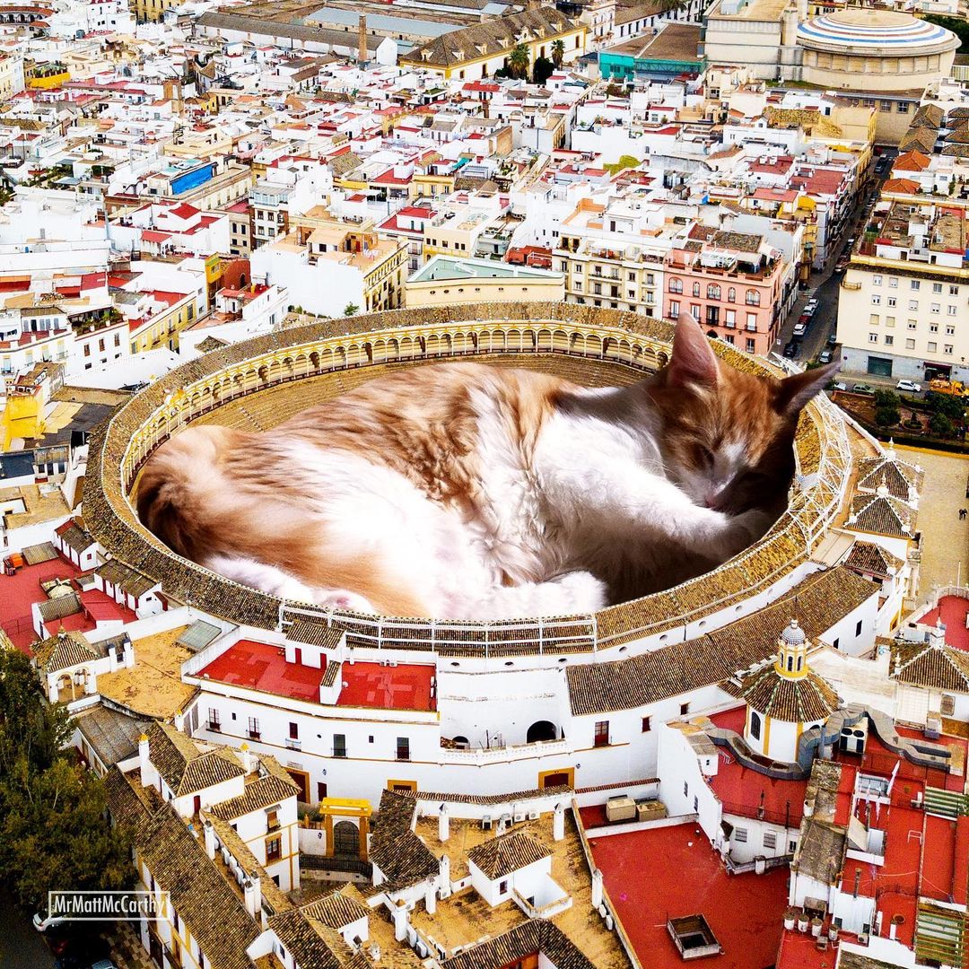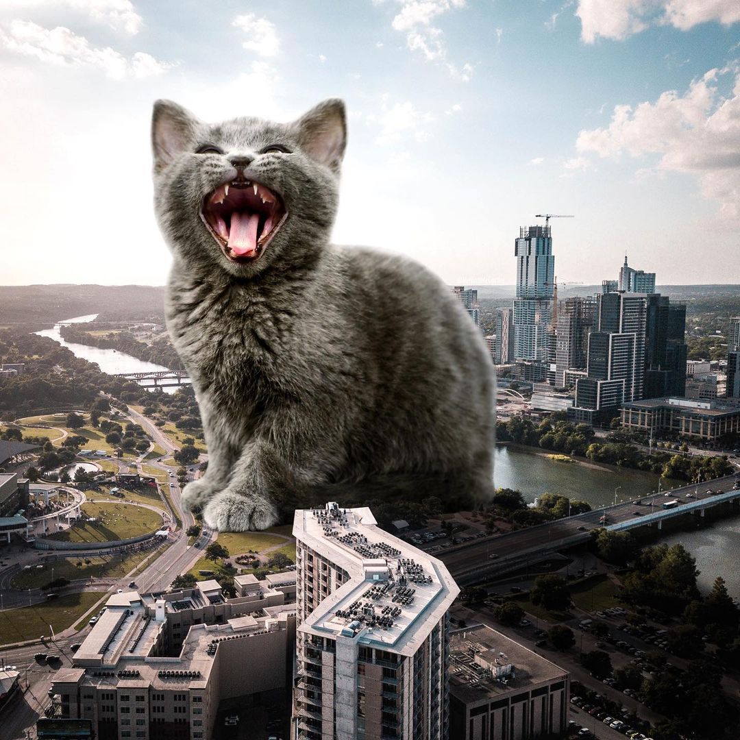 So what’s a better way to make use of this advanced technology if not making some well-loved cat edits? US-based artist Matt McCarthy did just that, combining the best of two worlds into his surrealistic giant cat images that have stolen the internet.