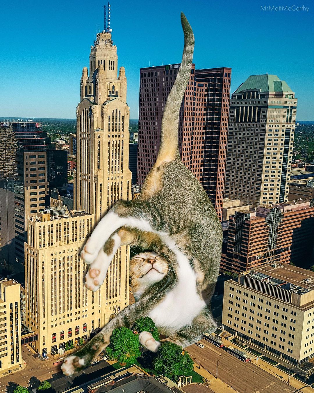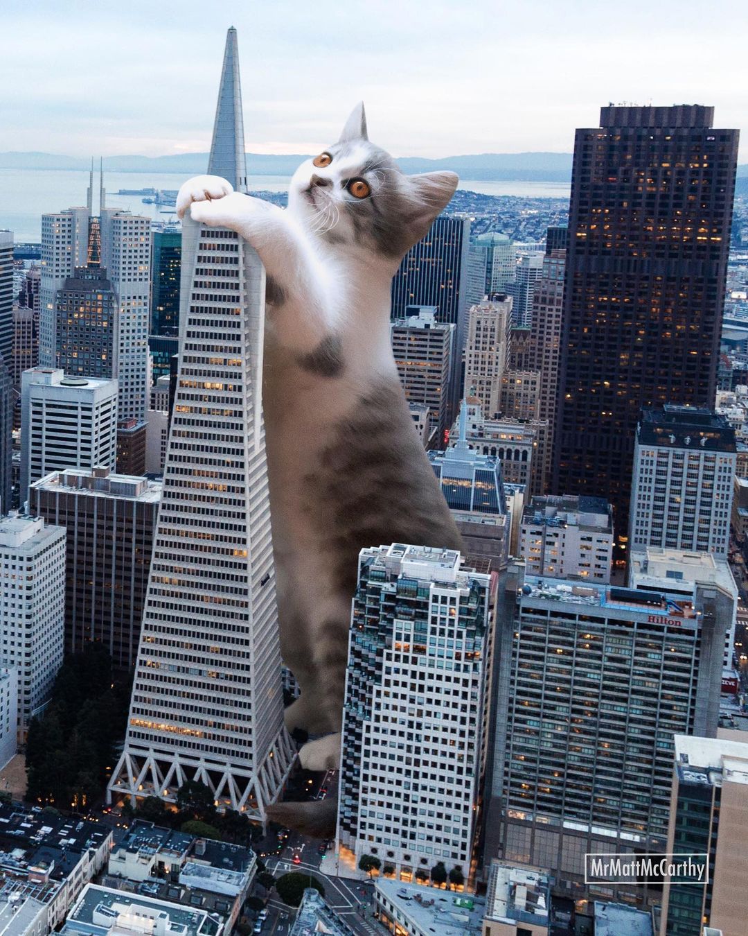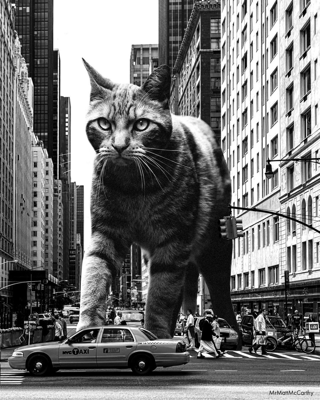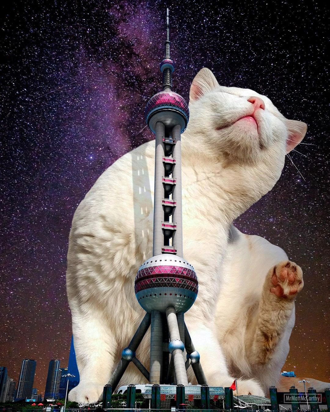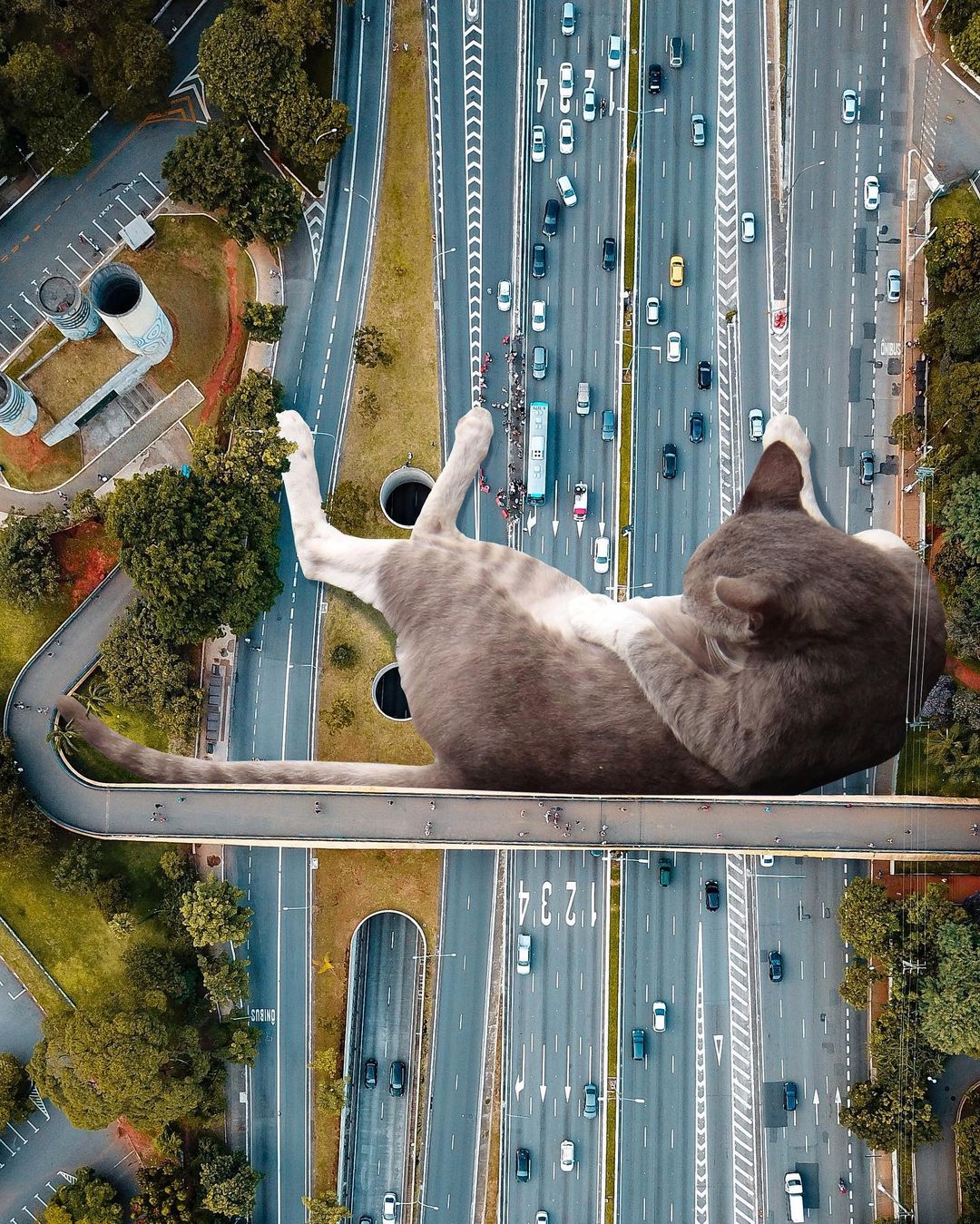 So what’s a better way to make use of this advanced technology if not making some well-loved cat edits? US-based artist Matt McCarthy did just that, combining the best of two worlds into his surrealistic giant cat images that have stolen the internet.