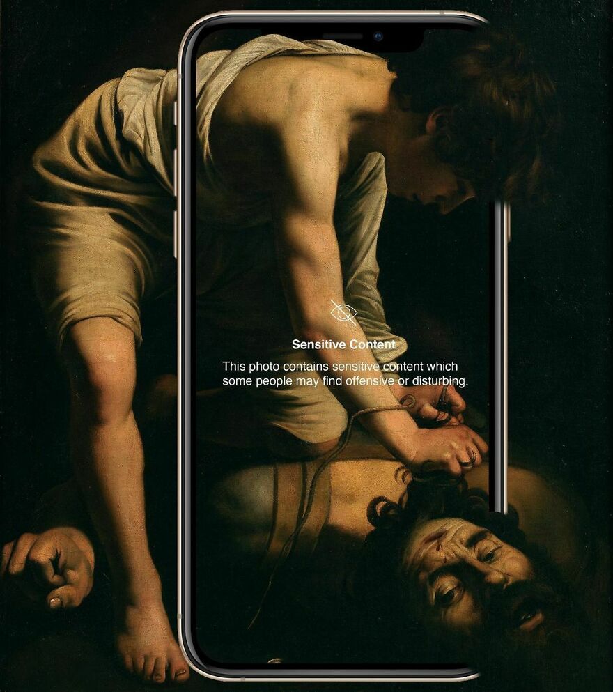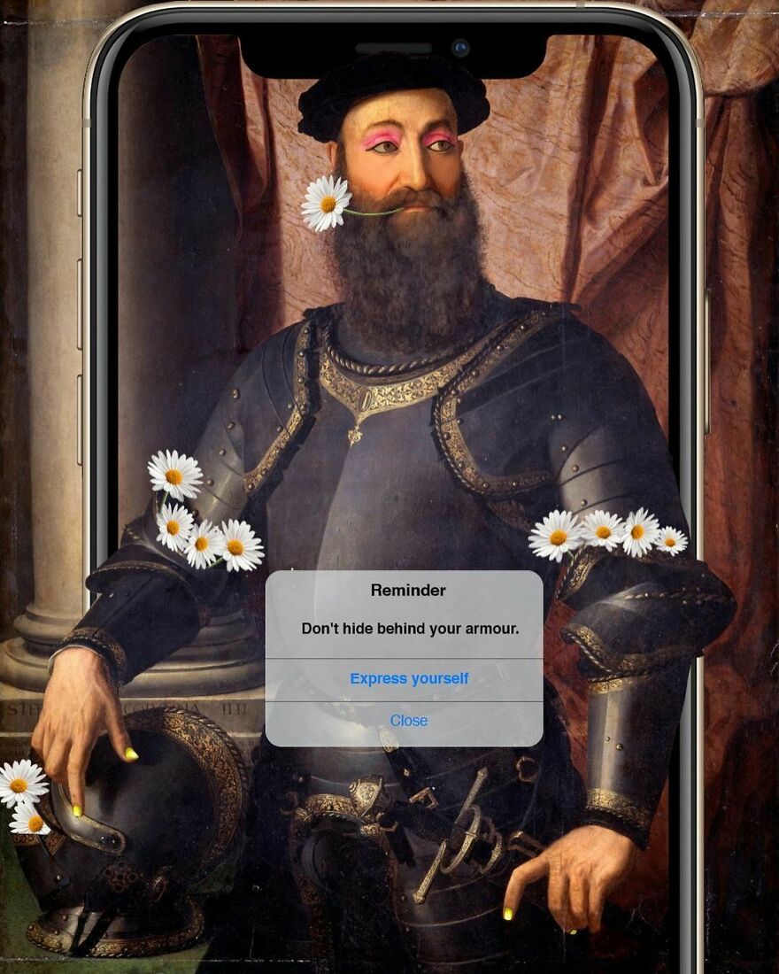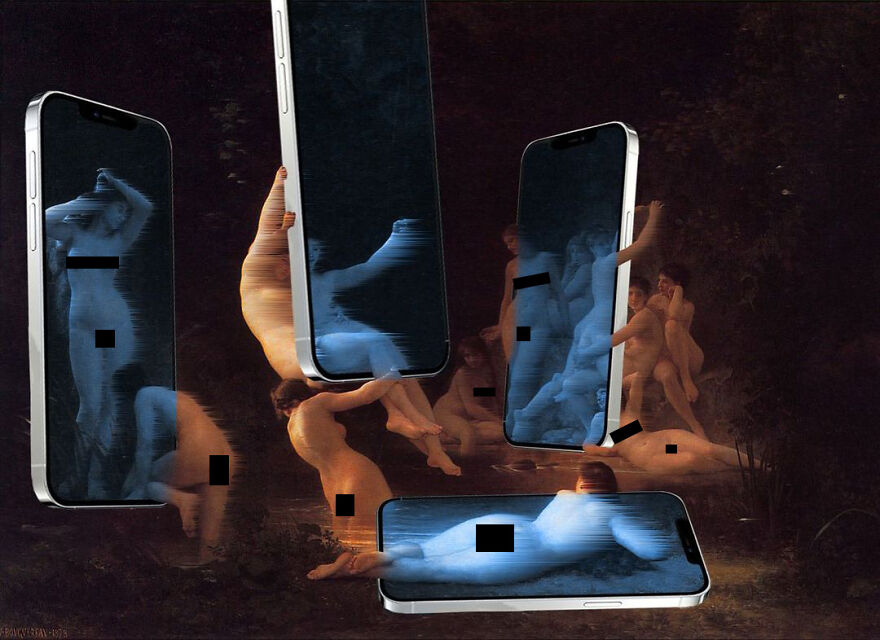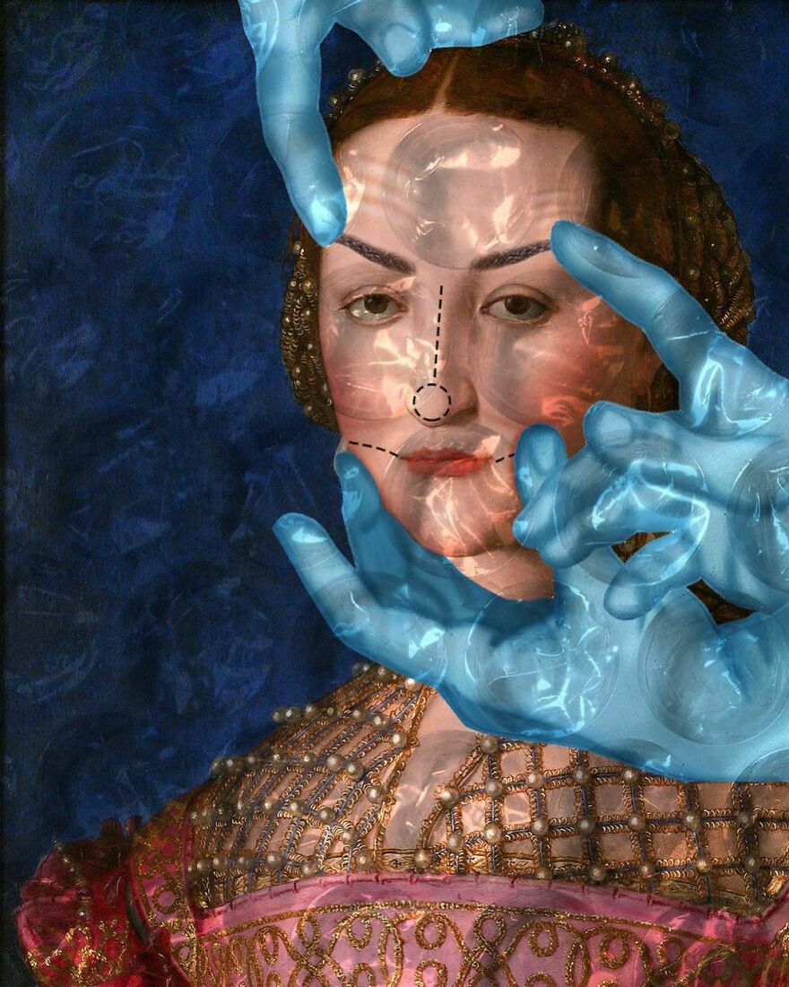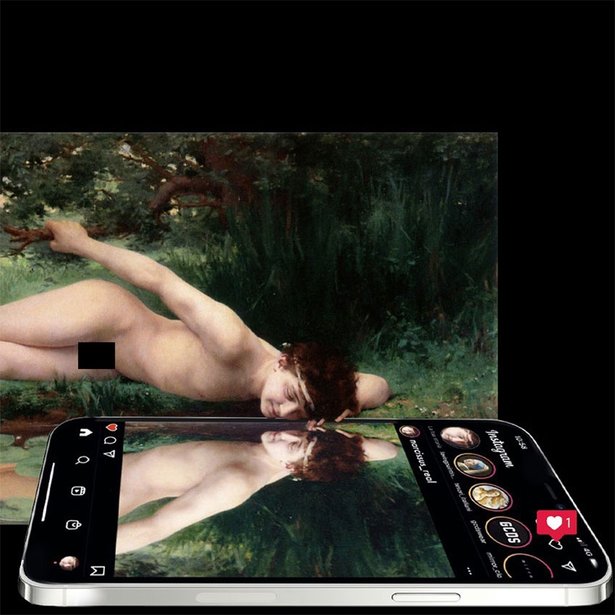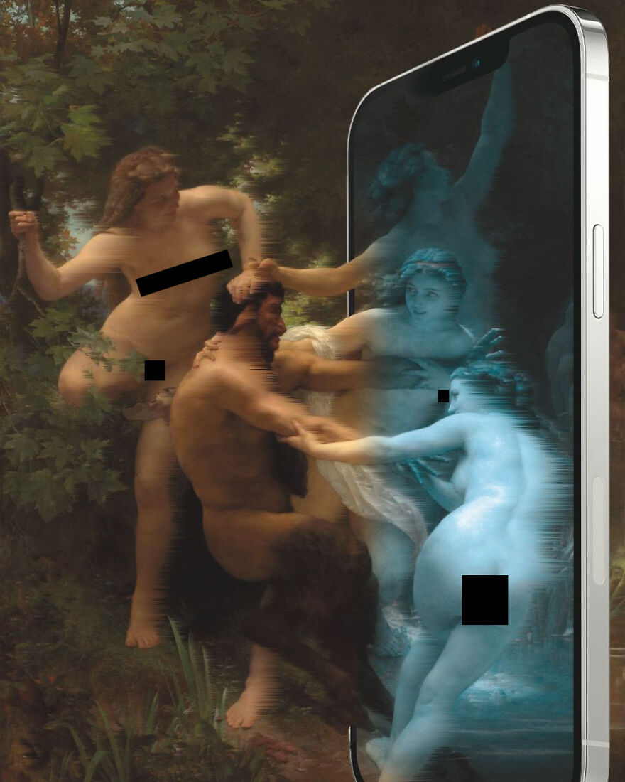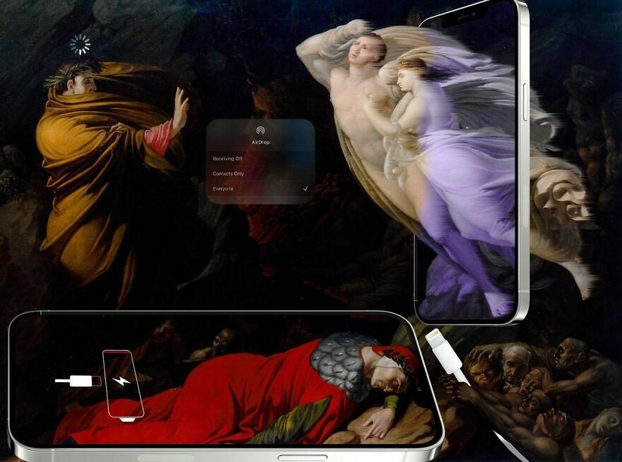 “My imagery was born as a critique of society, saturated with social, aesthetic canons, and appearances. This concept is reflected in my works that deal with social media as a new religion and a new creed. To express my intent, I take artworks from the past and re-contextualize them to the present day. In fact, in my works, the main character is a smartphone, my identifying mark,” the artist told Bored Panda.