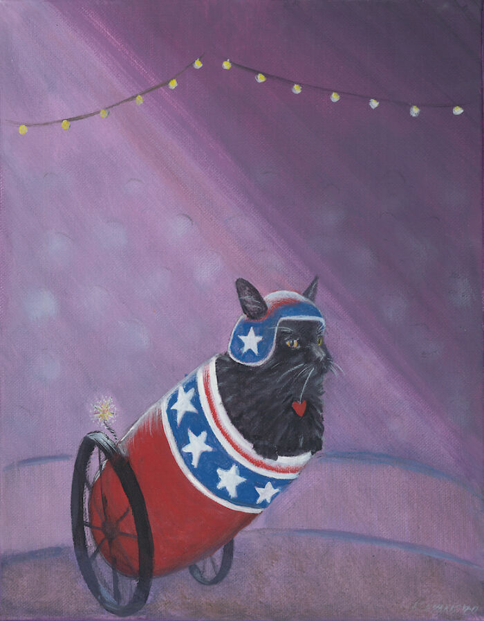 Kathryn Evans is a scenic artist for Robot Rooster. Kathryn now lives in Pasadena, CA with her cat and the inspiration for her art, Booboo. Boo is a senior kitty dwelling in Southern California. His adventurous spirit & amusing antics serve as inspiration for his mother, artist Kathryn Evans.