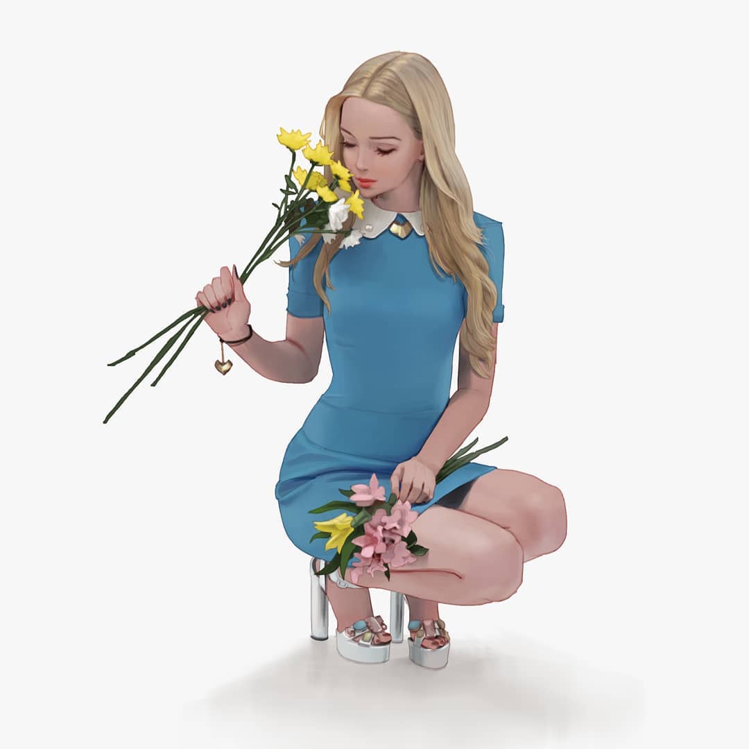 Wonbin Lee (이원빈) is an illustrator living and working in South Korea. In his work he mainly portrays young women in a variety of styles – from classical to anime. One thing I can say is that the portraits are very expressive and stylish.