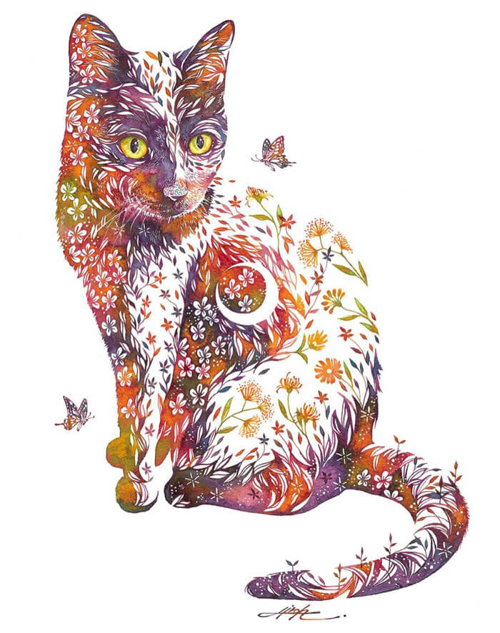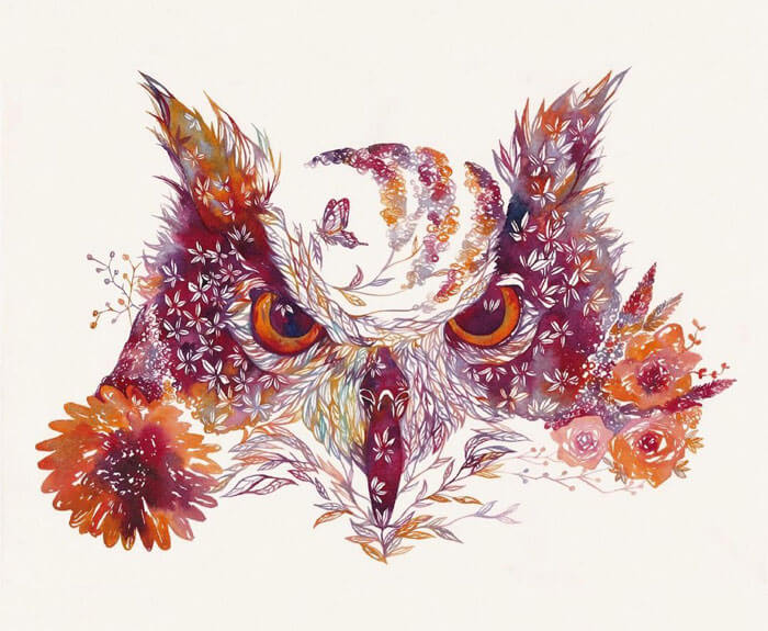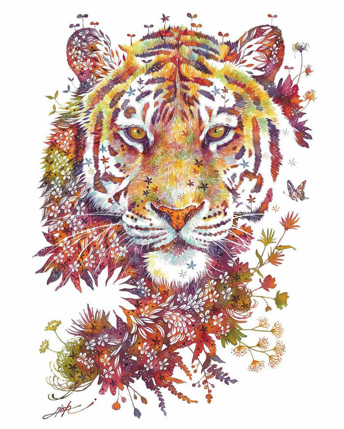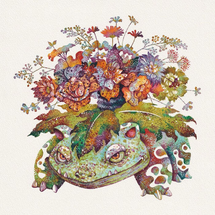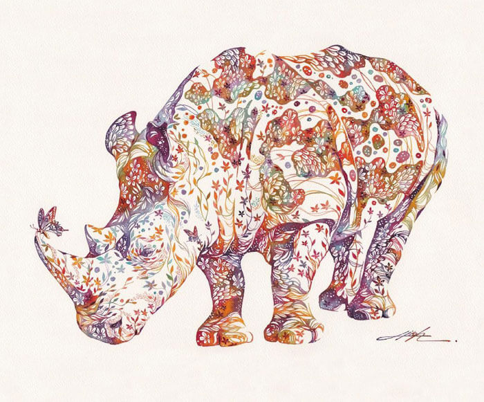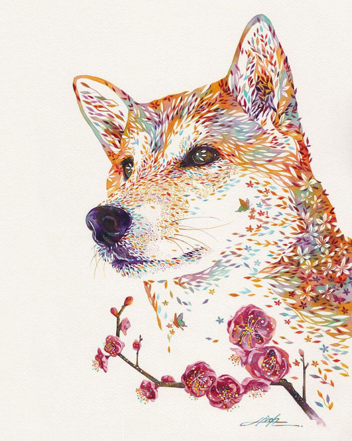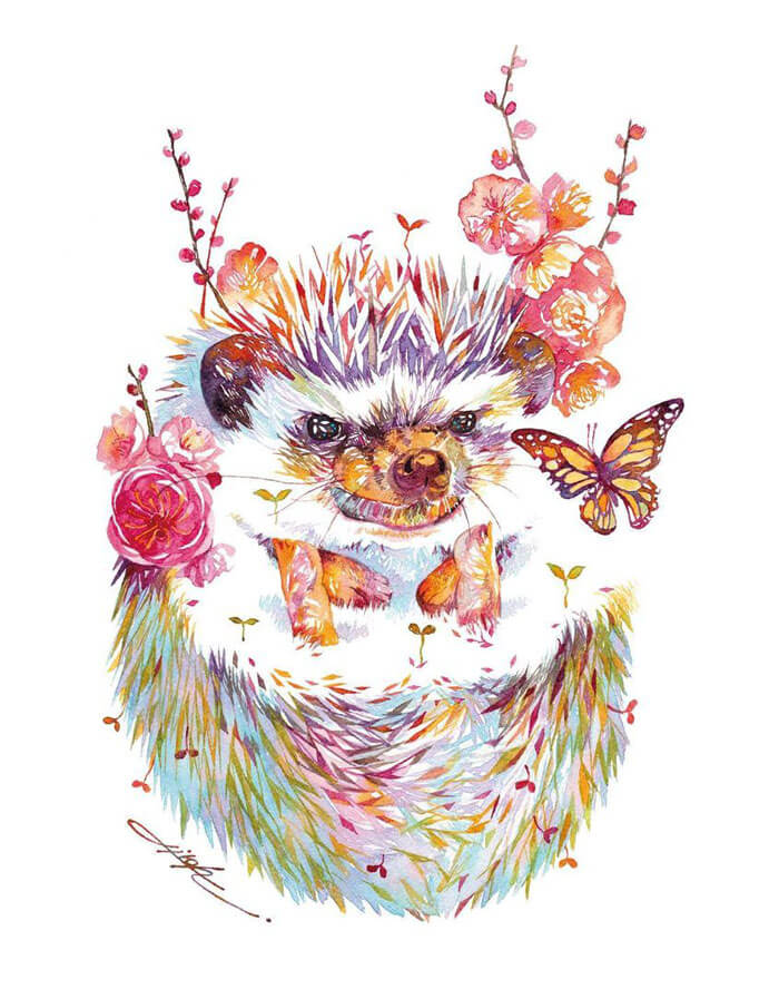 An artist from Japan, Hiroki Takeda, is recognised for his colorful watercolor paintings frequently depicting a variety of adorable animals composed from floral motifs. His way of painting is incredibly special and effortlessly recognizable, so take pleasure in the attractive fusion of flora and fauna that is depicted in his art.