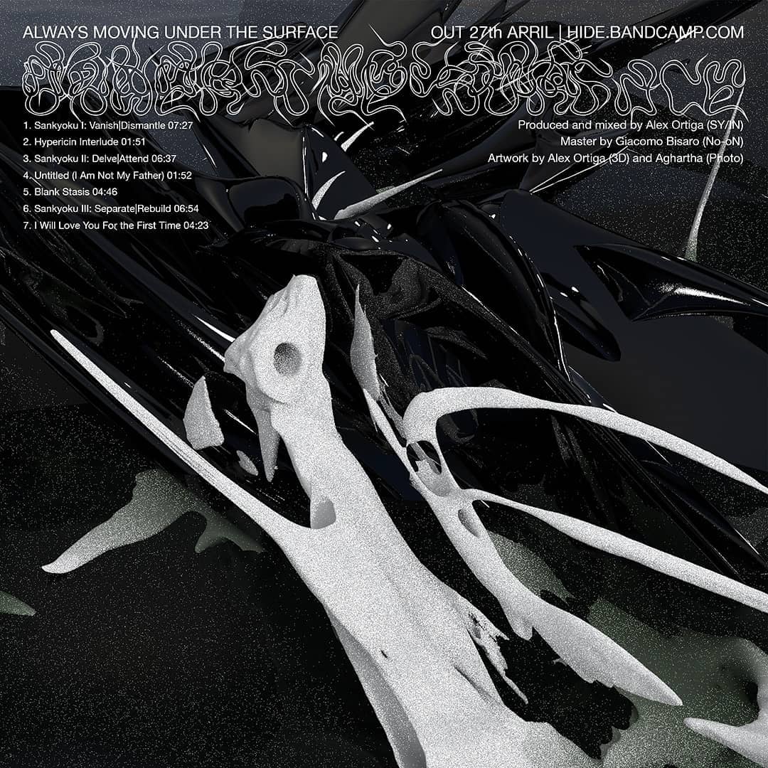 In 2016 came his first solo record “Pass Away”, published for Ghost City Collective, Prehistoric Silence, Rest Now! e S t A Y. During March 2018 he launched his new artistic-editorial collective HIDE, focused on post-digital music, graphics and art. The attention of Alex Ortiga is currently focused on the creation of worlds where digital and physical are intertwined and thus hard to recognize. The point of interest of his artistic research is the digitization and inhumanization of analogical items and sounds, to create distant echoes and artifacts that stand as remains of an ancient future.
