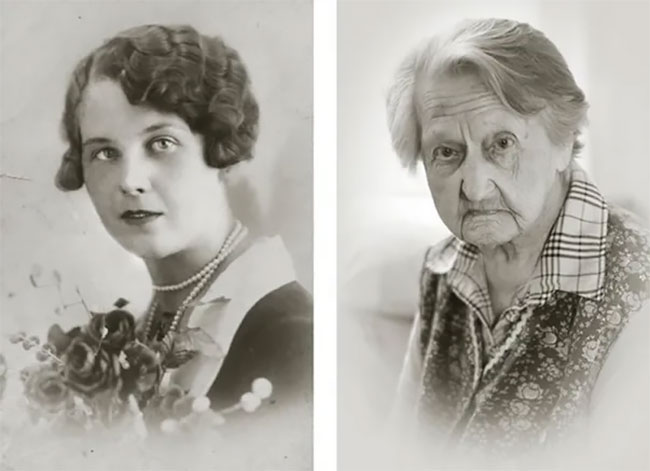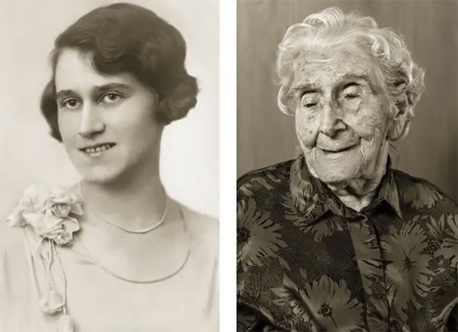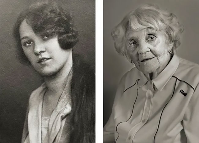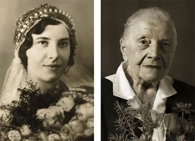 Anna Pochobradská, at age 30 and 100