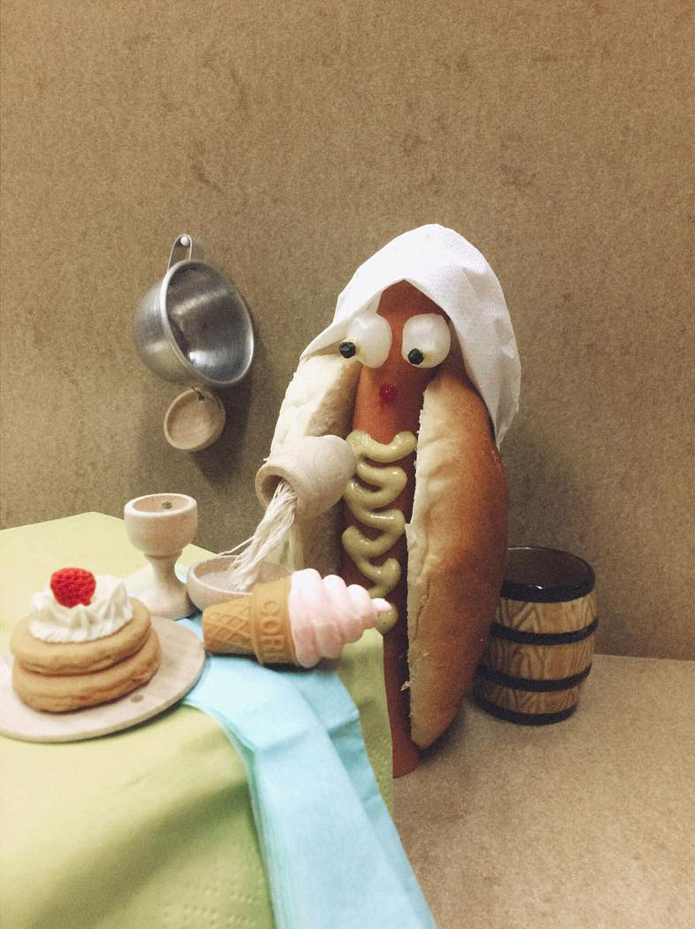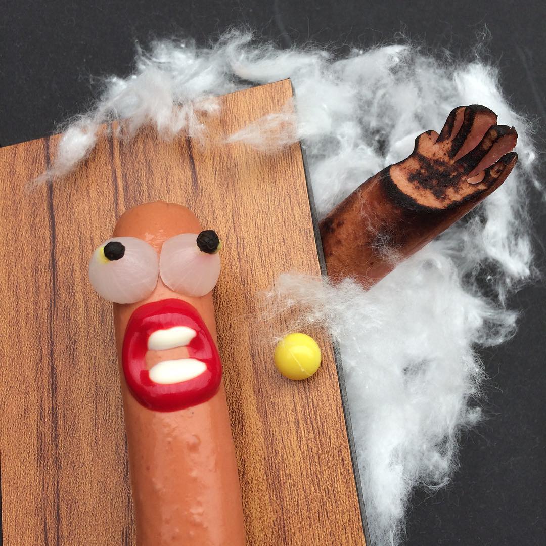 BurpZine is an Instagram series created by pastry chef Erik Vernieuwe, in cooperation with photographer Kris De Smedt, in his spare time. The series is exactly what you think it is – sausages dressed as celebrities, art pieces, and cartoon characters.