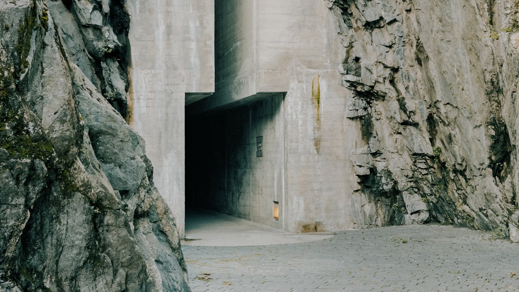 The castle is elevated against a rocky hillside on the Alpine foothills and forms the centerpiece of the historic Castles of Bellinzona, which are characterized as a UNESCO World Heritage Site. Originally built to fortify the passageway to the Alps, the Brutalist gateway to Castelgrande was built out of the rocky mountainscape as part of a broader revamp of the site between 1984 and 1991, and is now considered one of Galfetti’s most memorable projects. Bossi’s series highlights the contrasting qualities of the smooth, sharp-lined entrance to the castle against the imposing natural rock wall. Bossi took the images on an overcast afternoon in the warmer months, taking only a film camera and with 10 shots with him, most of which are featured below.