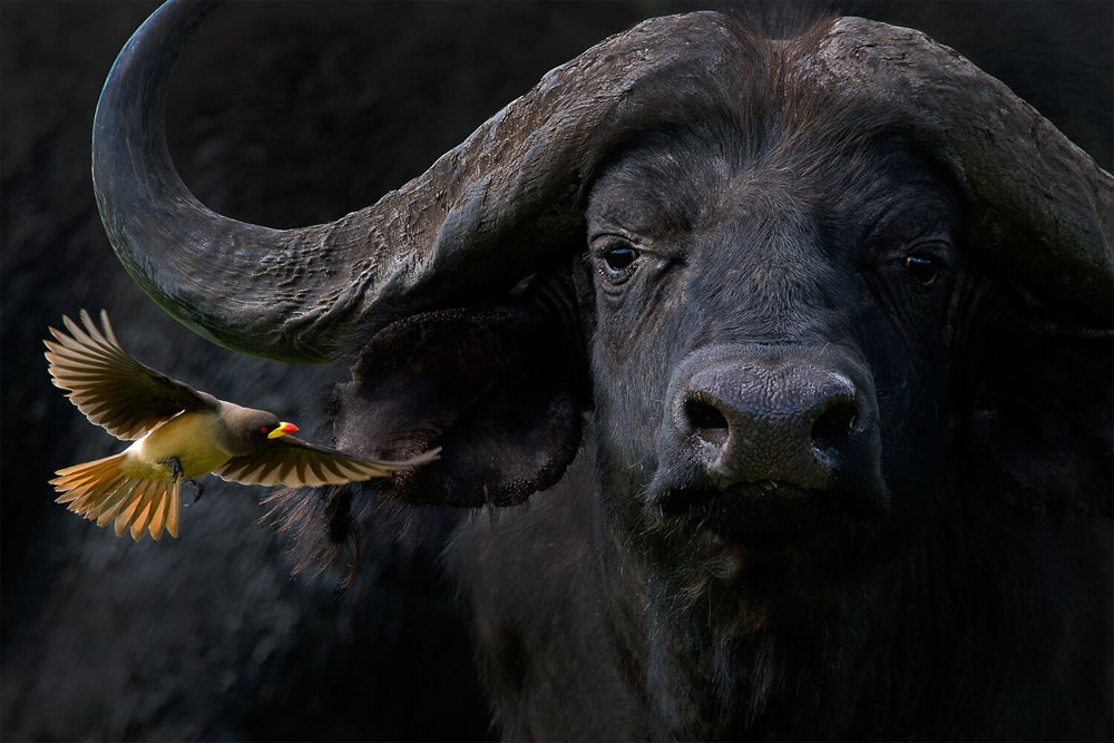 Birds in the Environment: ‘Yellow-billed Oxpecker with Cape Buffalo’ by Barbara Fleming (Bronze)