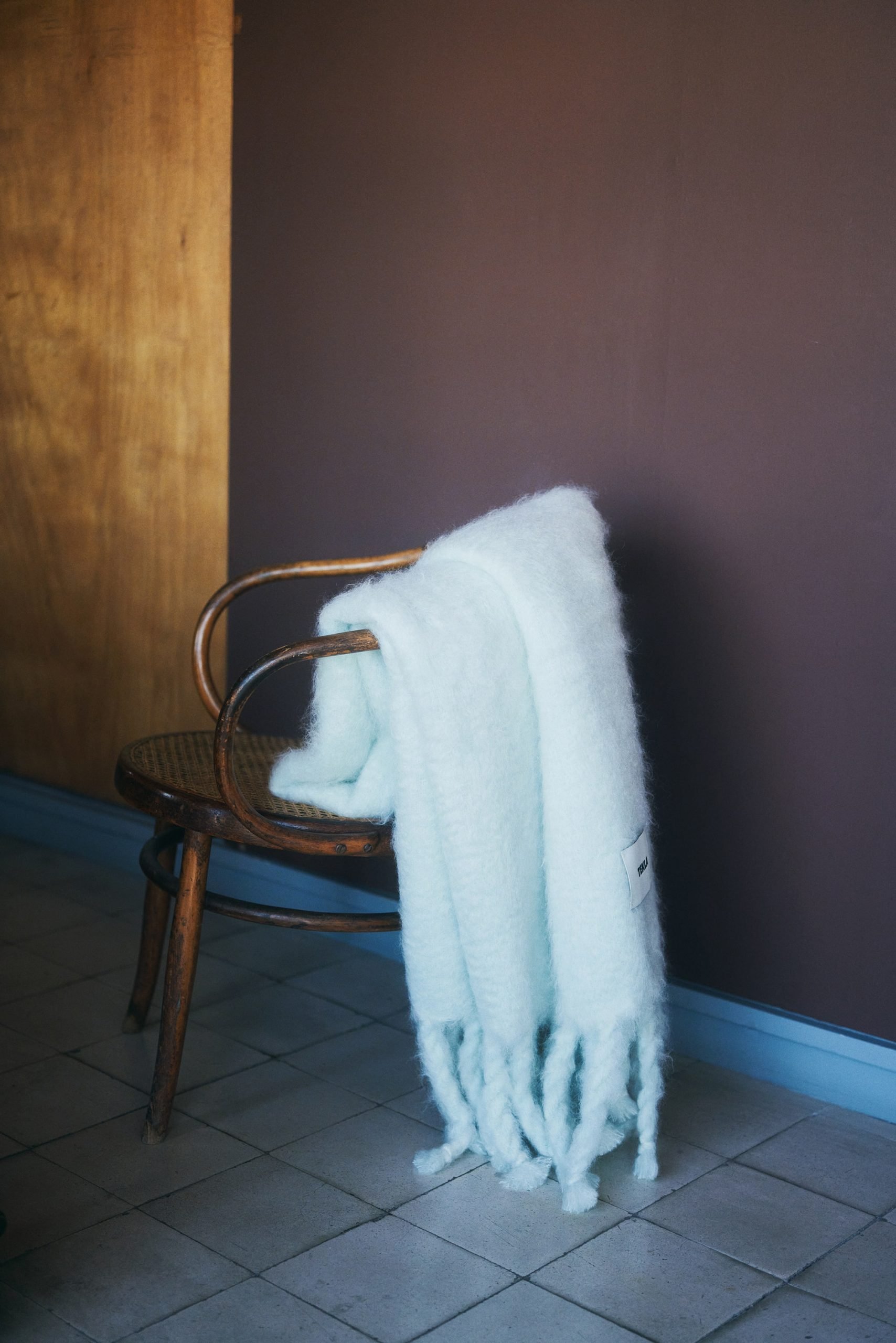 “Le Corbusier’s colors are a natural foundation for this limited collection of blankets,” says Hedin. The project started during the 2021 Salone del Mobile, when the designer met with Les Couleurs Suisse AG—a Zurich-based company granted worldwide rights by the Fondation Le Corbusier to disseminate the designer’s original palette of colors. The blanket collection is directly inspired by the 63 hues that comprise Le Corbusier’s architectural color system, known as the Architecture Polychromy, after his 1930 essay of the same name. “We were attracted to the colors in his creations, how they were so central to the design and how he used them in his own life,” he adds. For the project, Hedin selected three captivating shades—the spearmint green Outremer Gris, the ocean blue Bleu Outremer, and the candyfloss pink Rose Vif—and translated these to hand-woven textiles. “The whole project represented a big challenge for both because, as the first home-textile company to partner with them, we were to develop the unmatched Le Corbusier colors for a home textile collection on a natural yarn,” he continues. “The process included many rounds of color testing to ensure we would perfectly emulate the architect’s unique shades.”
