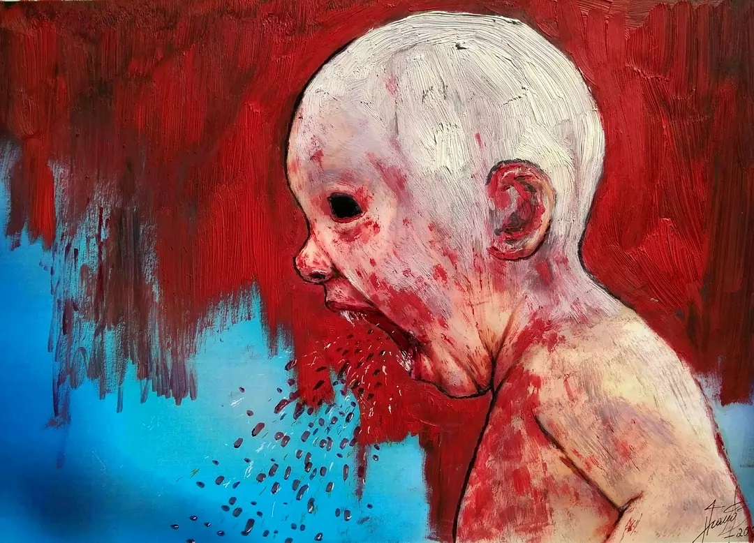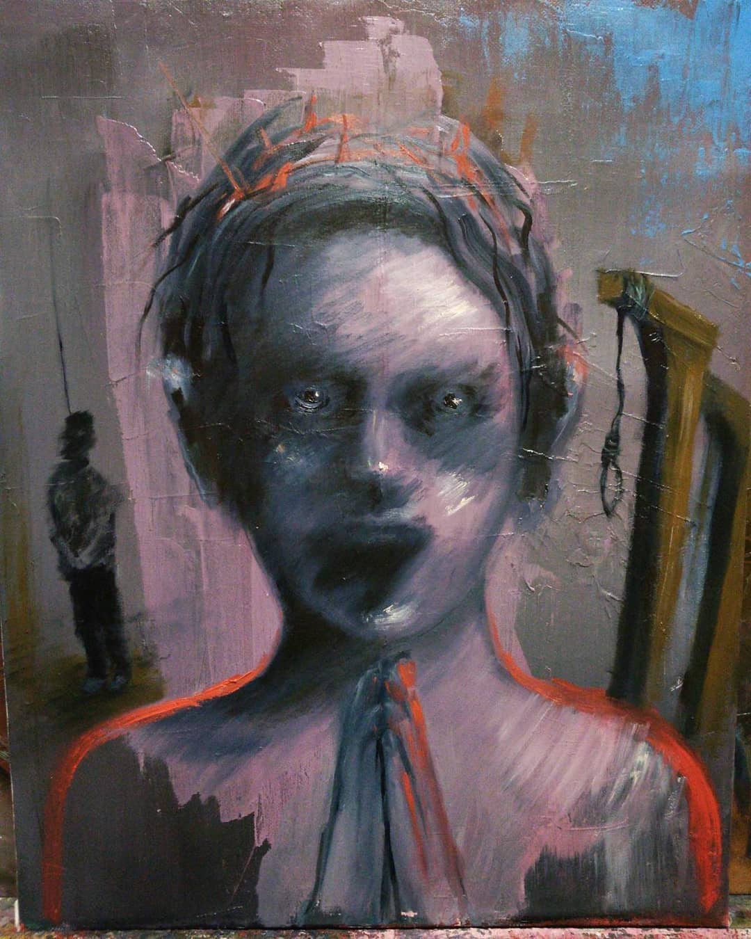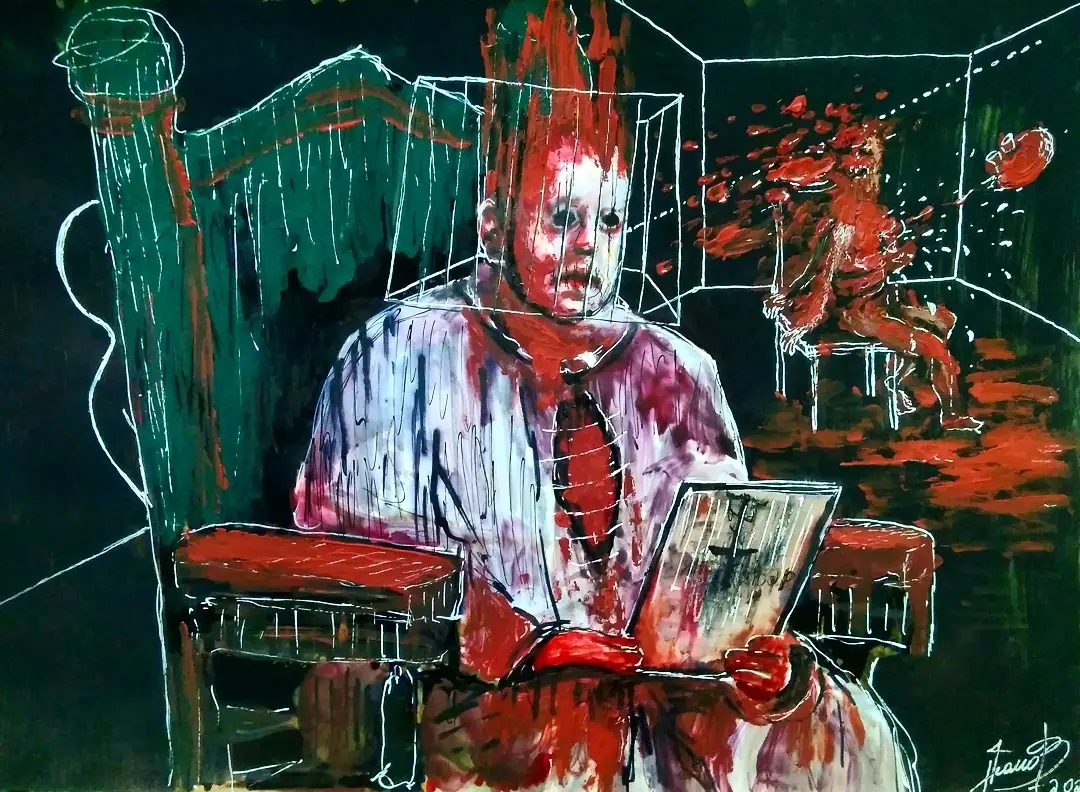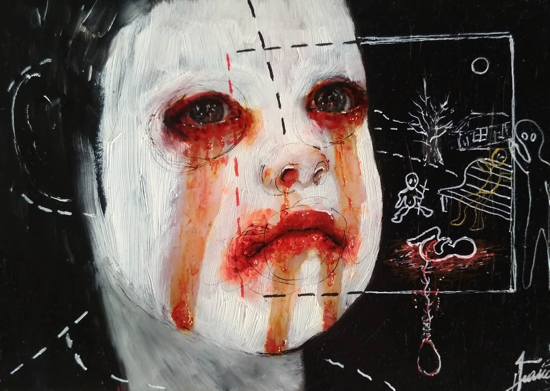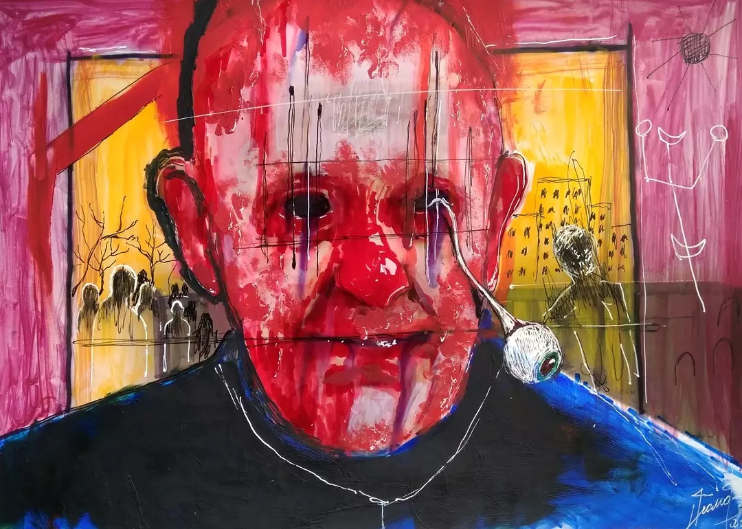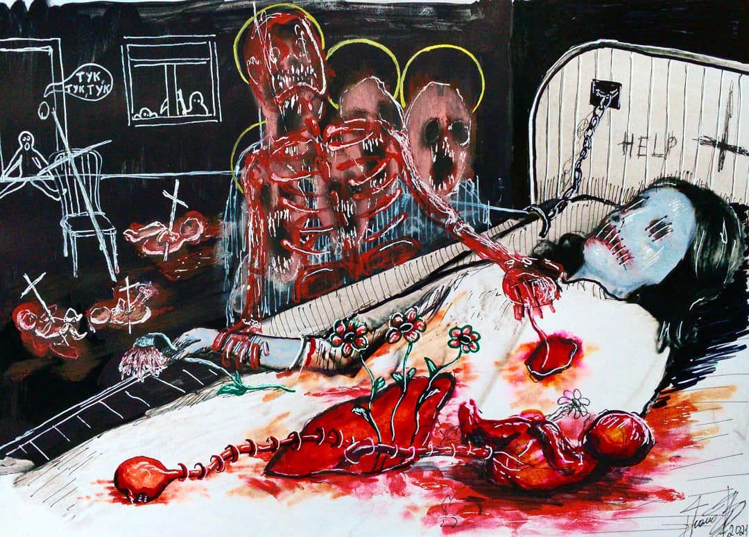 “Welcome to my world! There is no falsehood or anything superfluous here. I paint my life as it is, throwing a part of myself and my moments from life onto canvases… Pain and constant depression is the only thing that taught me to create…” he writes.