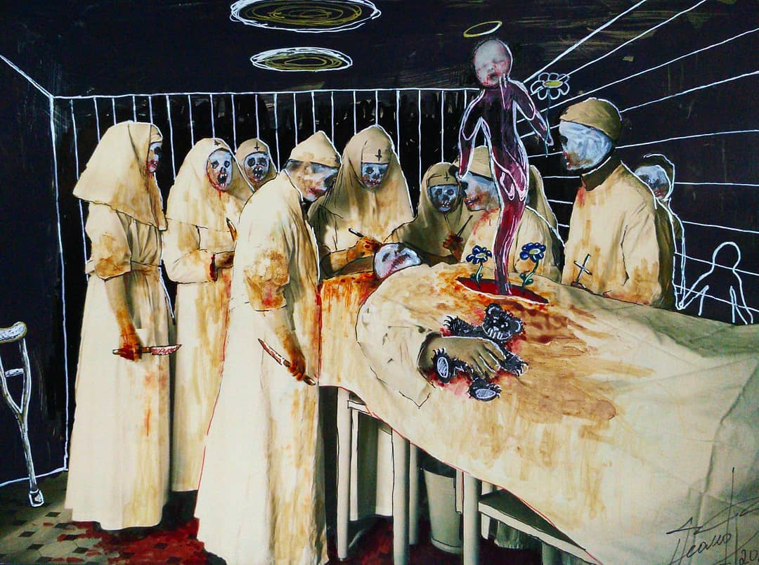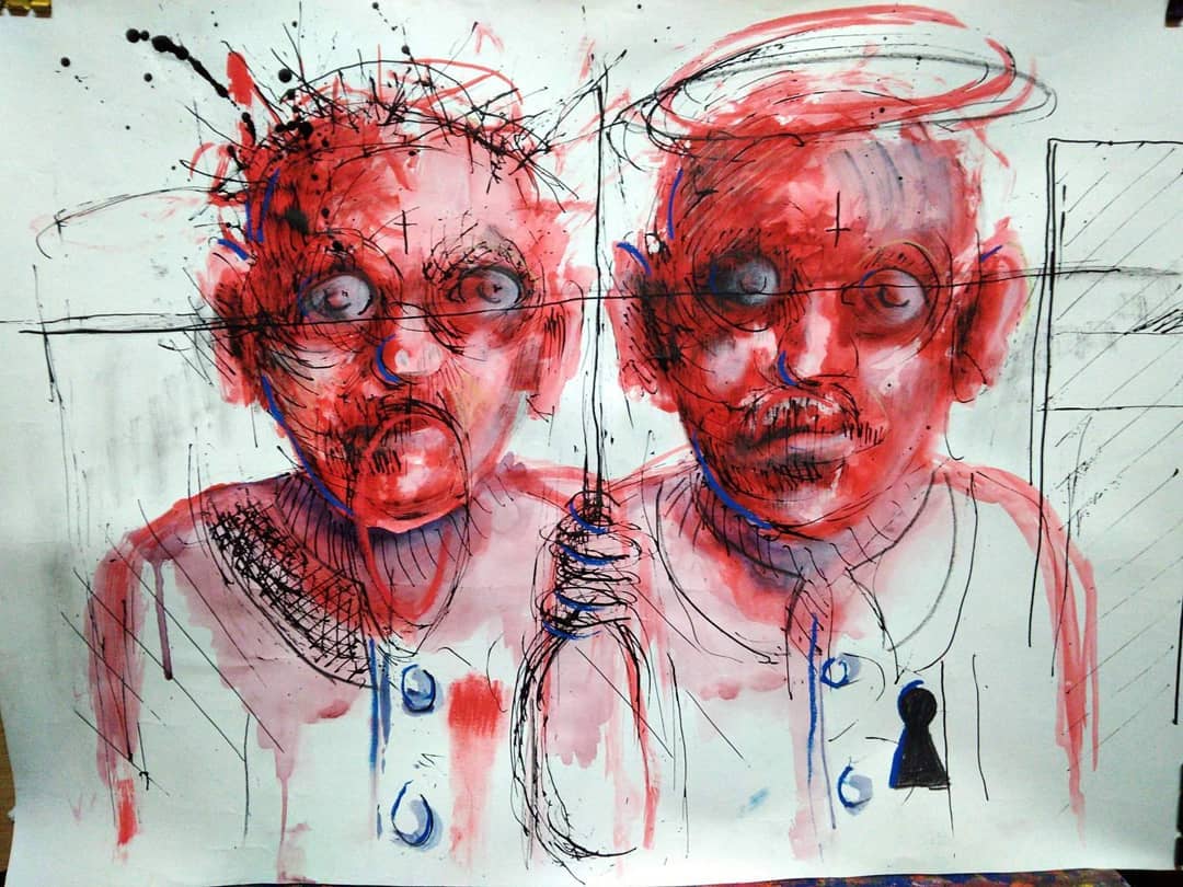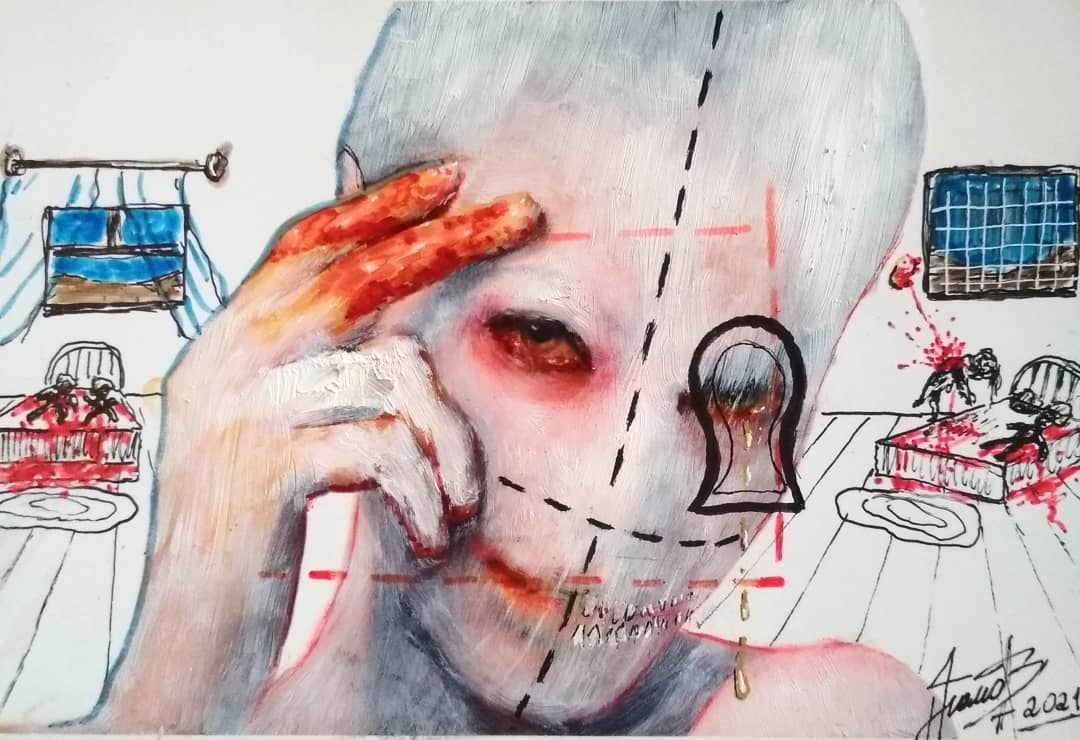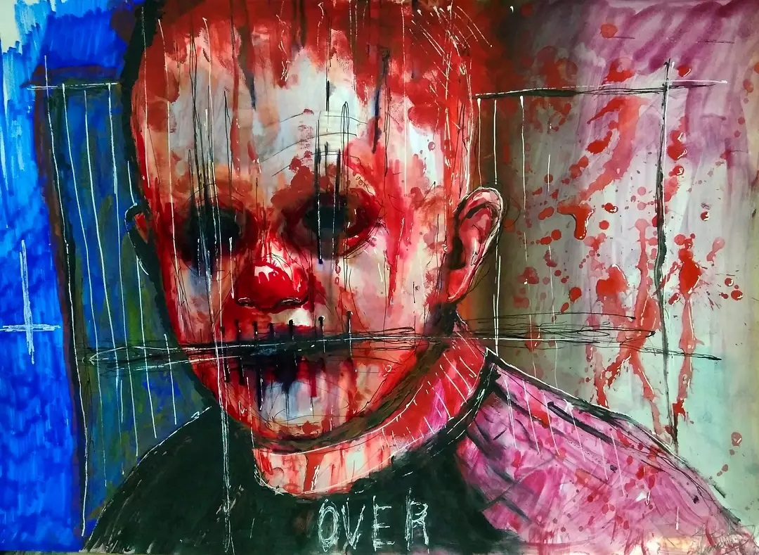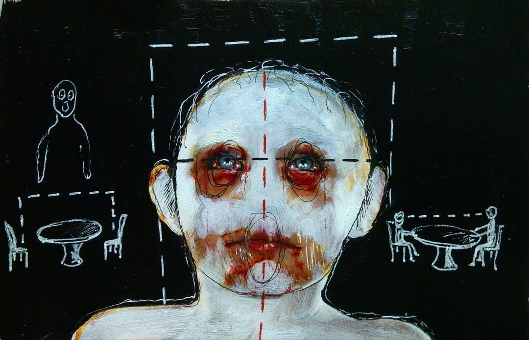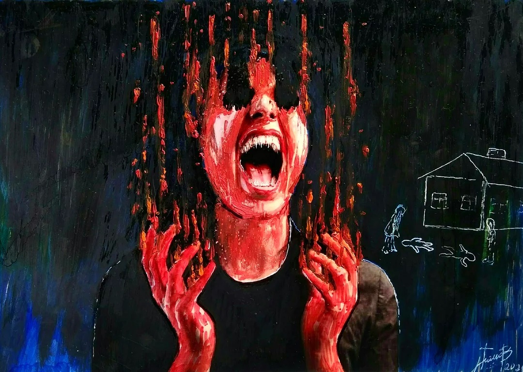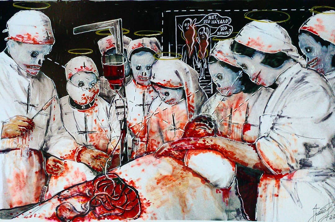 “Welcome to my world! There is no falsehood or anything superfluous here. I paint my life as it is, throwing a part of myself and my moments from life onto canvases… Pain and constant depression is the only thing that taught me to create…” he writes.