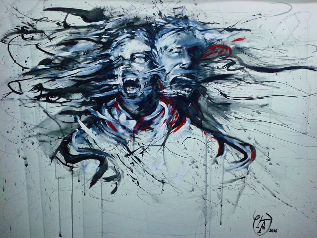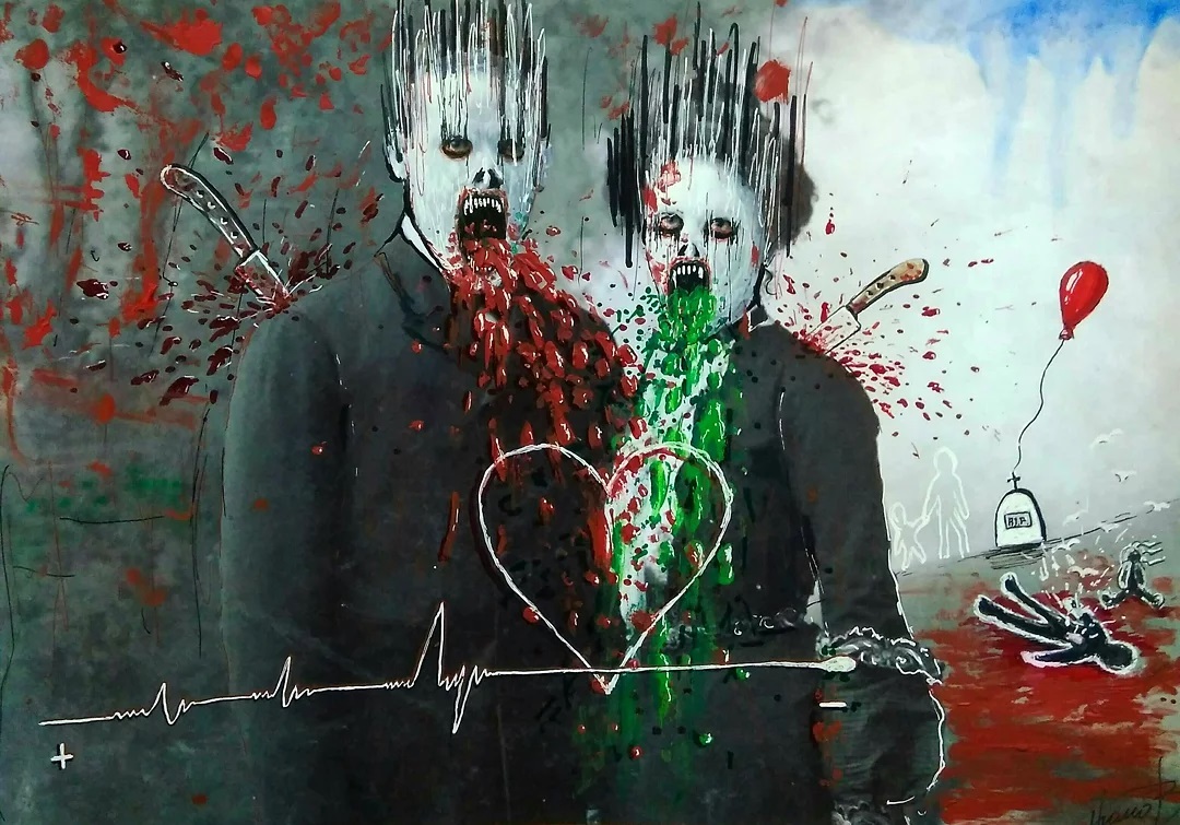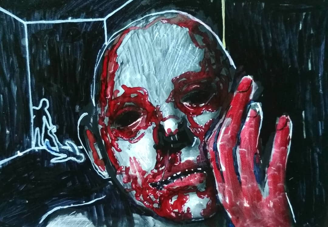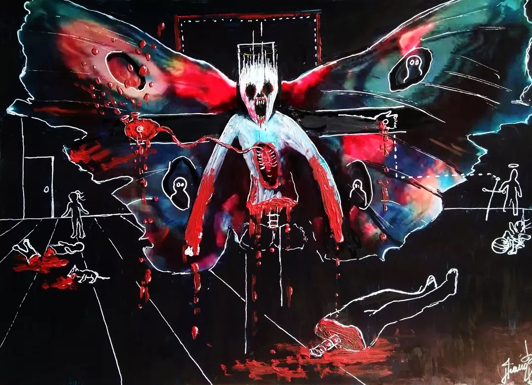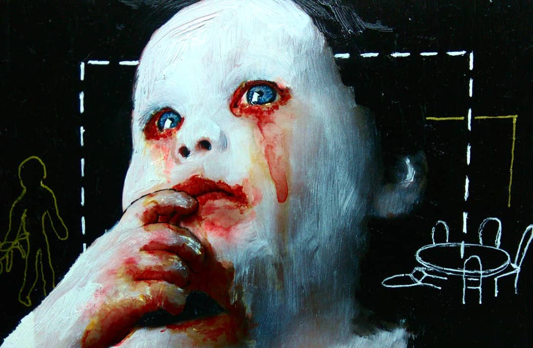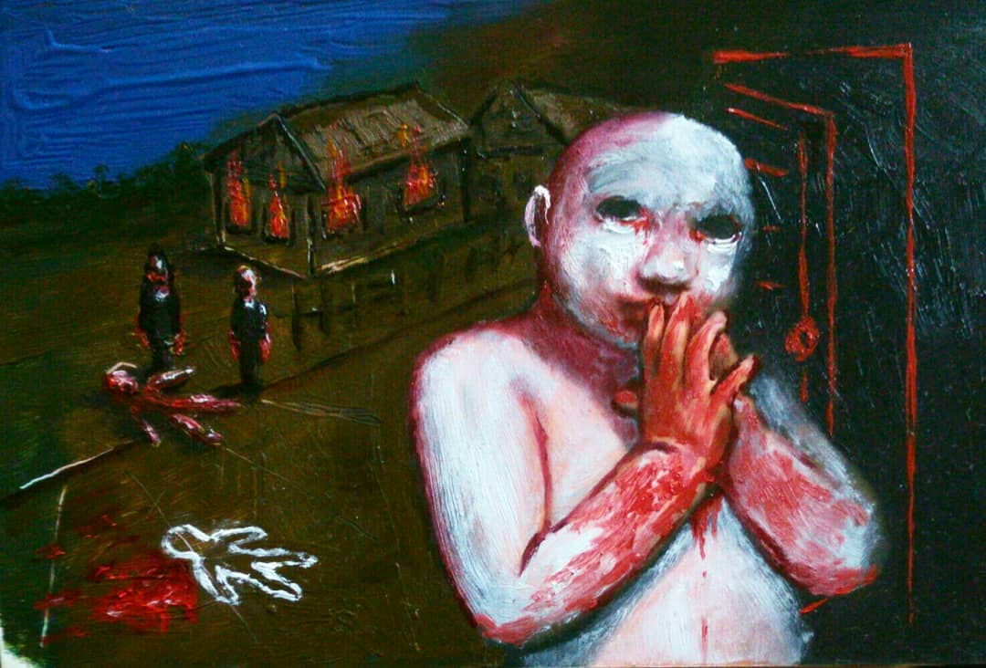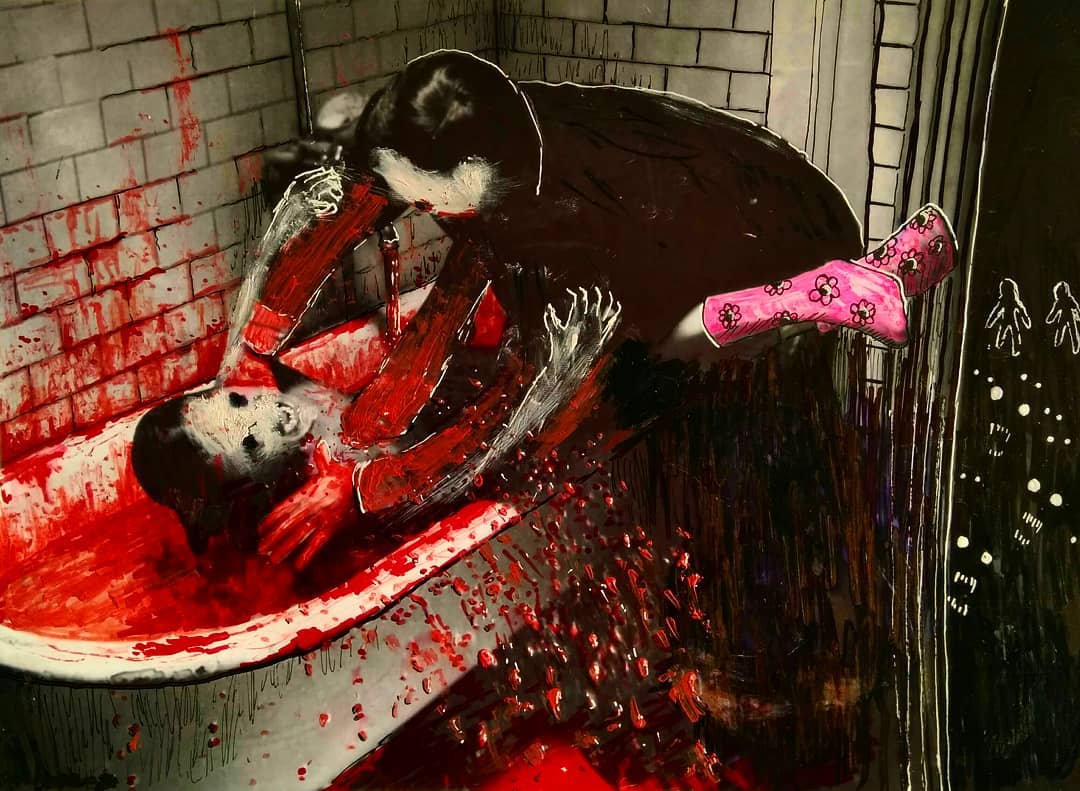 “Welcome to my world! There is no falsehood or anything superfluous here. I paint my life as it is, throwing a part of myself and my moments from life onto canvases… Pain and constant depression is the only thing that taught me to create…” he writes.