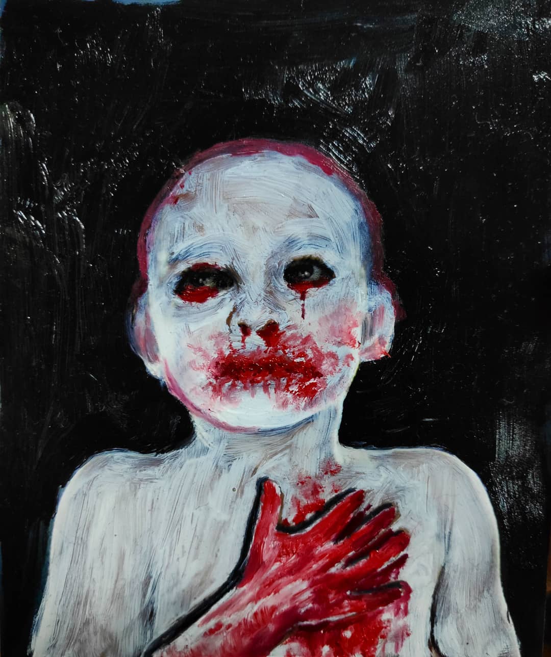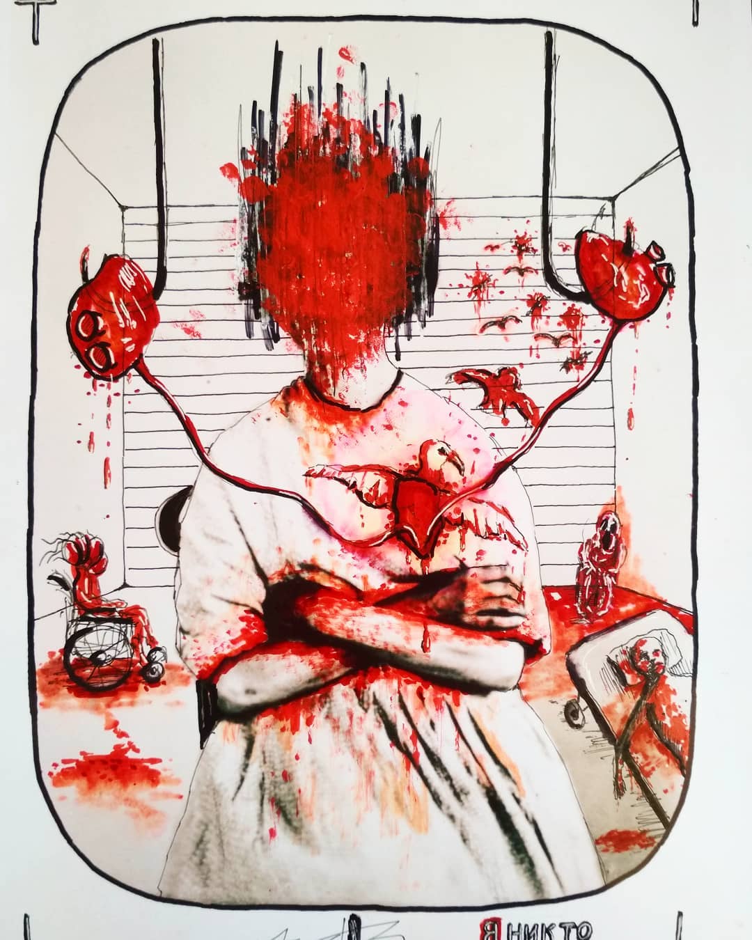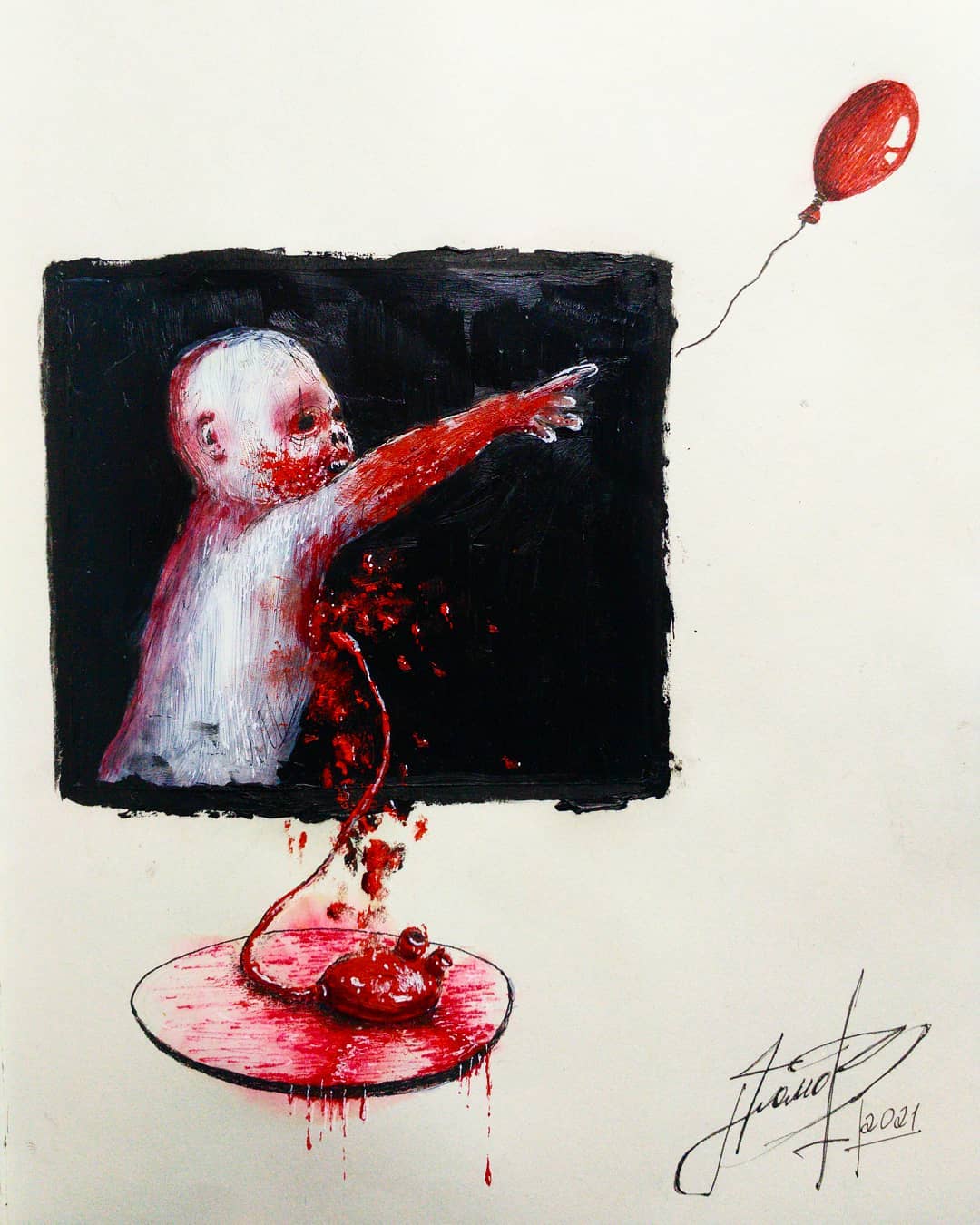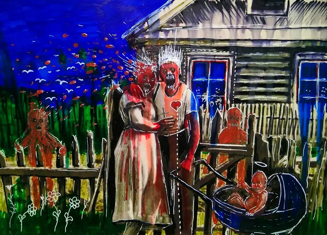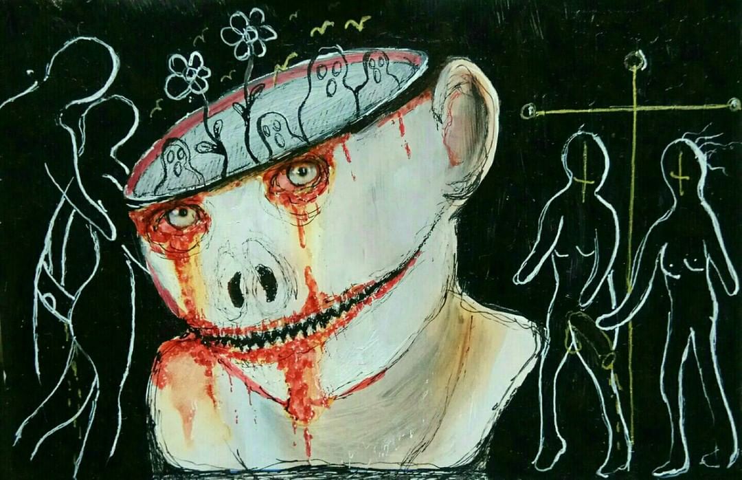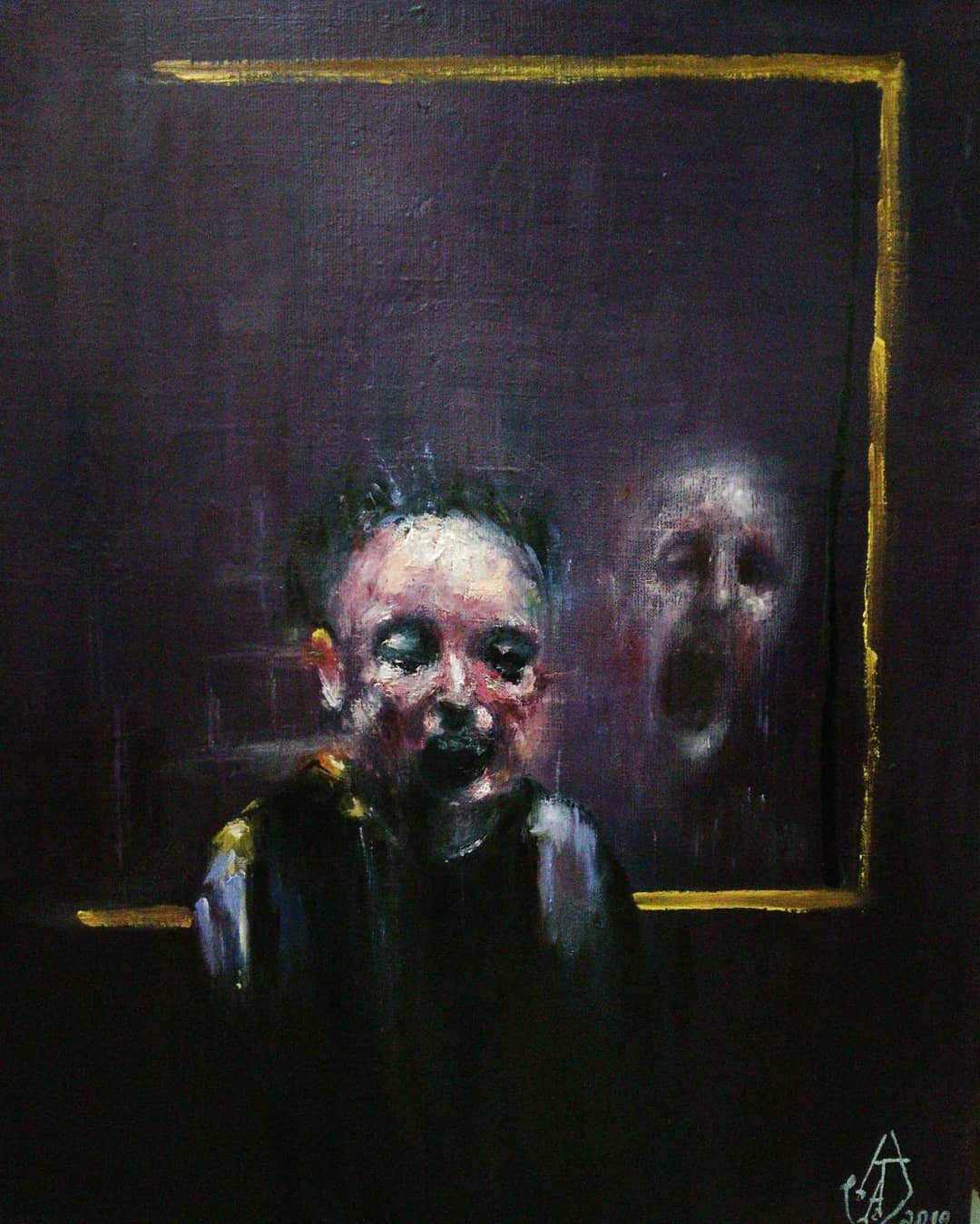 “Welcome to my world! There is no falsehood or anything superfluous here. I paint my life as it is, throwing a part of myself and my moments from life onto canvases… Pain and constant depression is the only thing that taught me to create…” he writes.