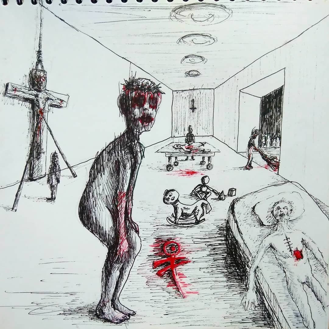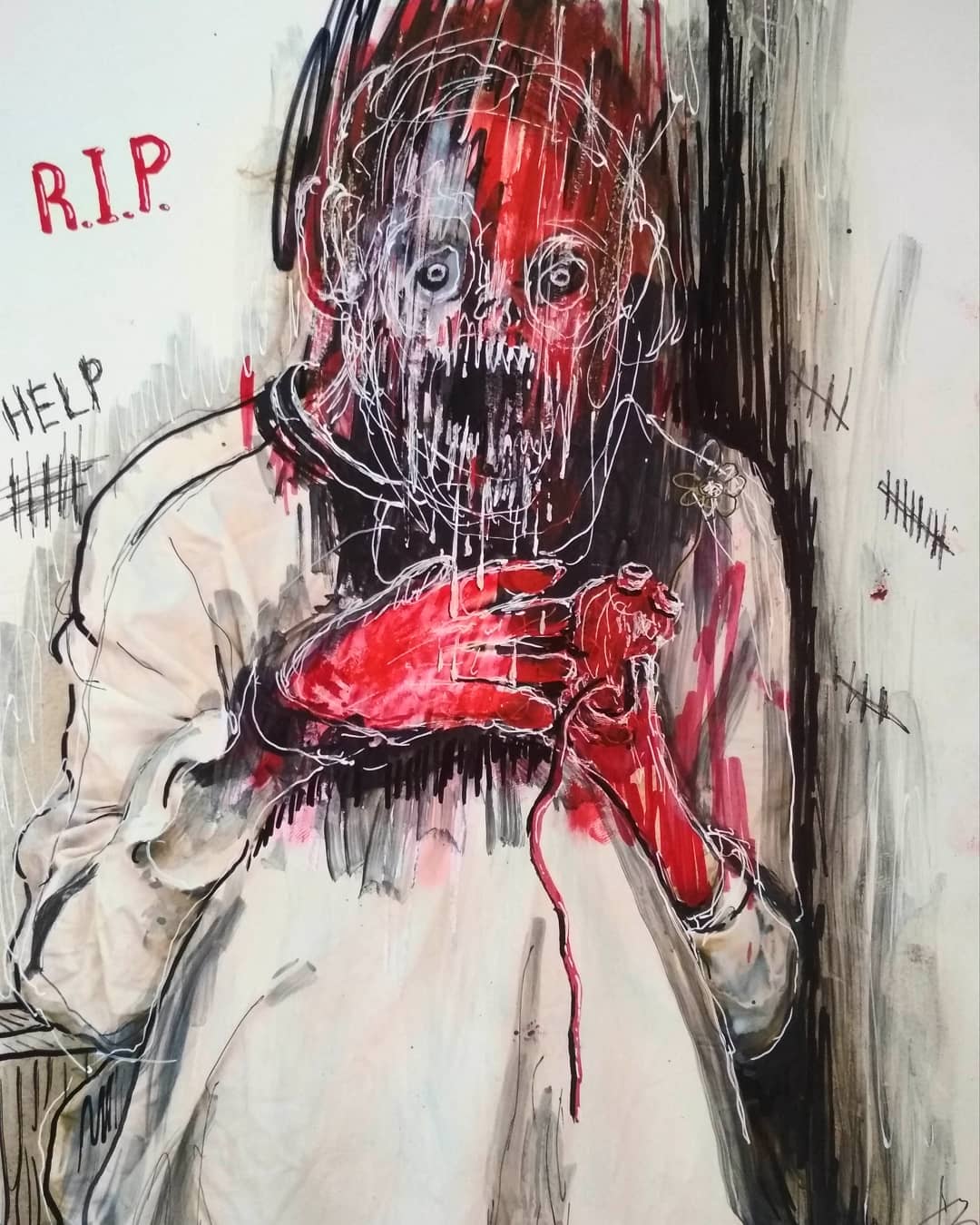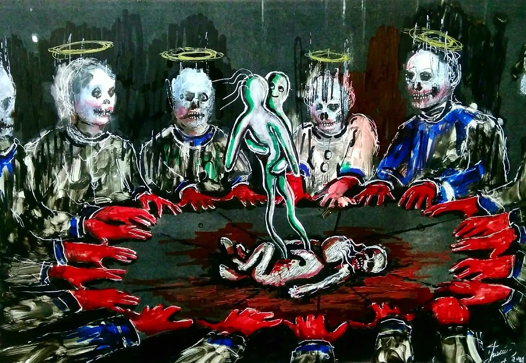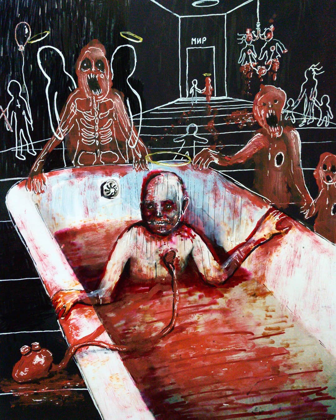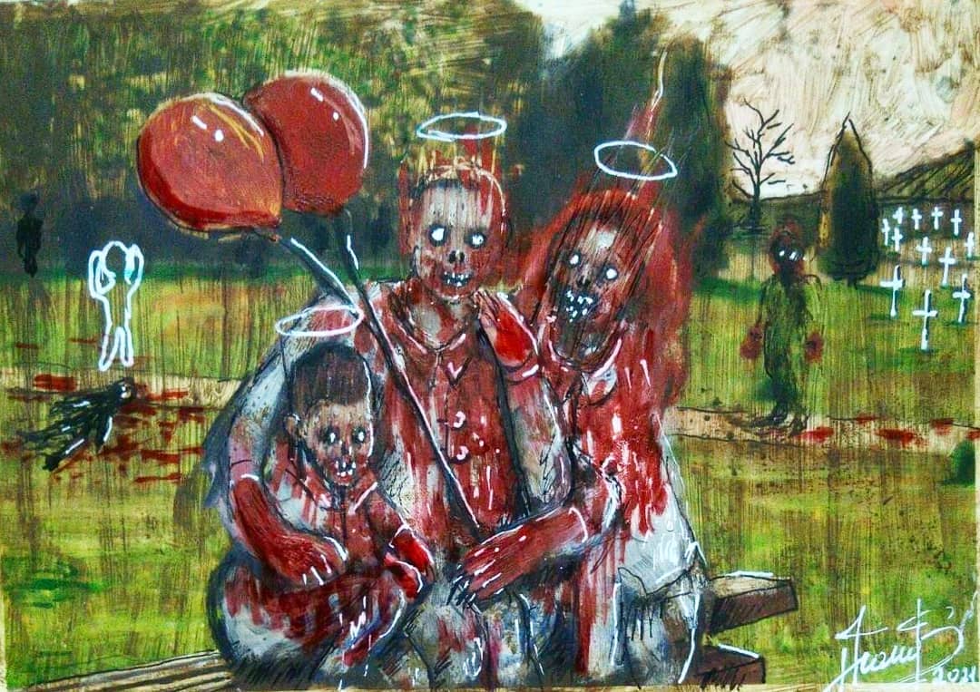 “Welcome to my world! There is no falsehood or anything superfluous here. I paint my life as it is, throwing a part of myself and my moments from life onto canvases… Pain and constant depression is the only thing that taught me to create…” he writes.