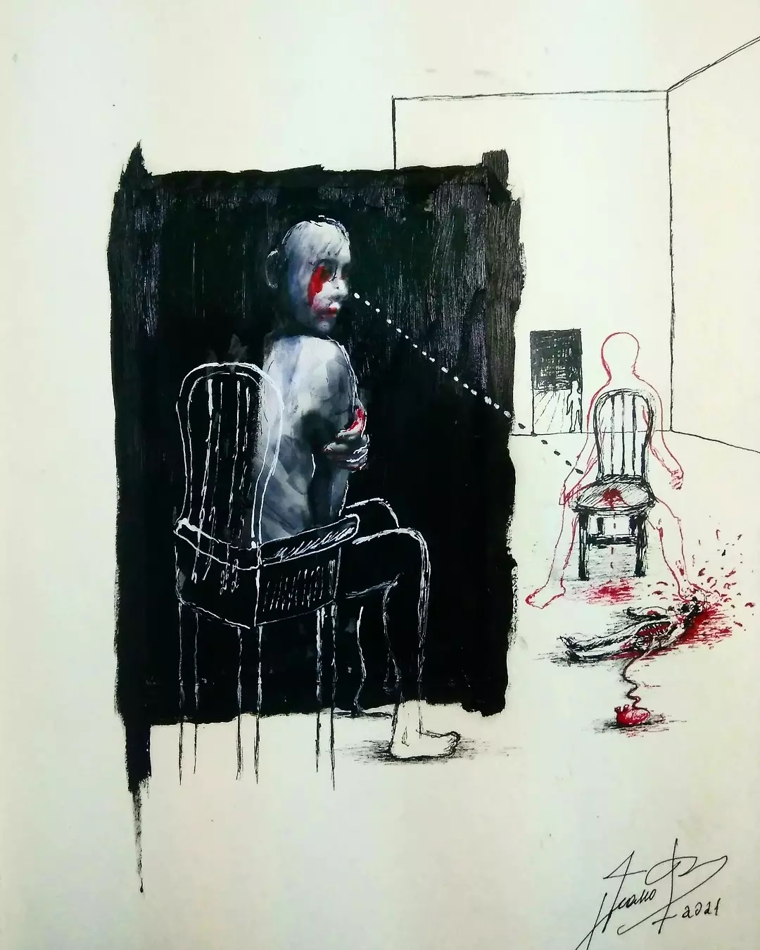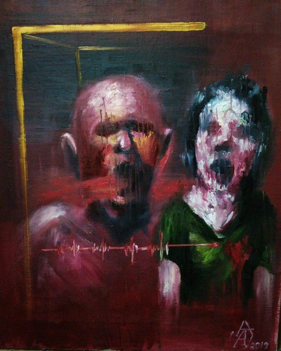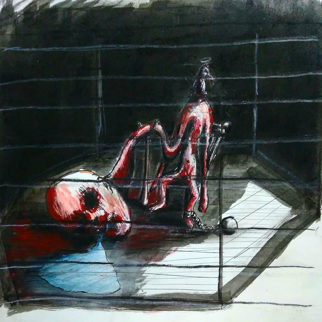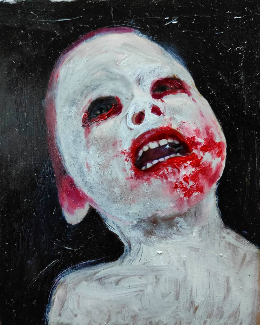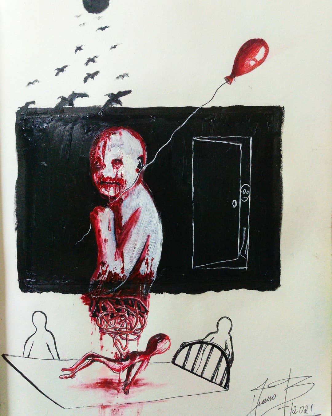 “Welcome to my world! There is no falsehood or anything superfluous here. I paint my life as it is, throwing a part of myself and my moments from life onto canvases… Pain and constant depression is the only thing that taught me to create…” he writes.