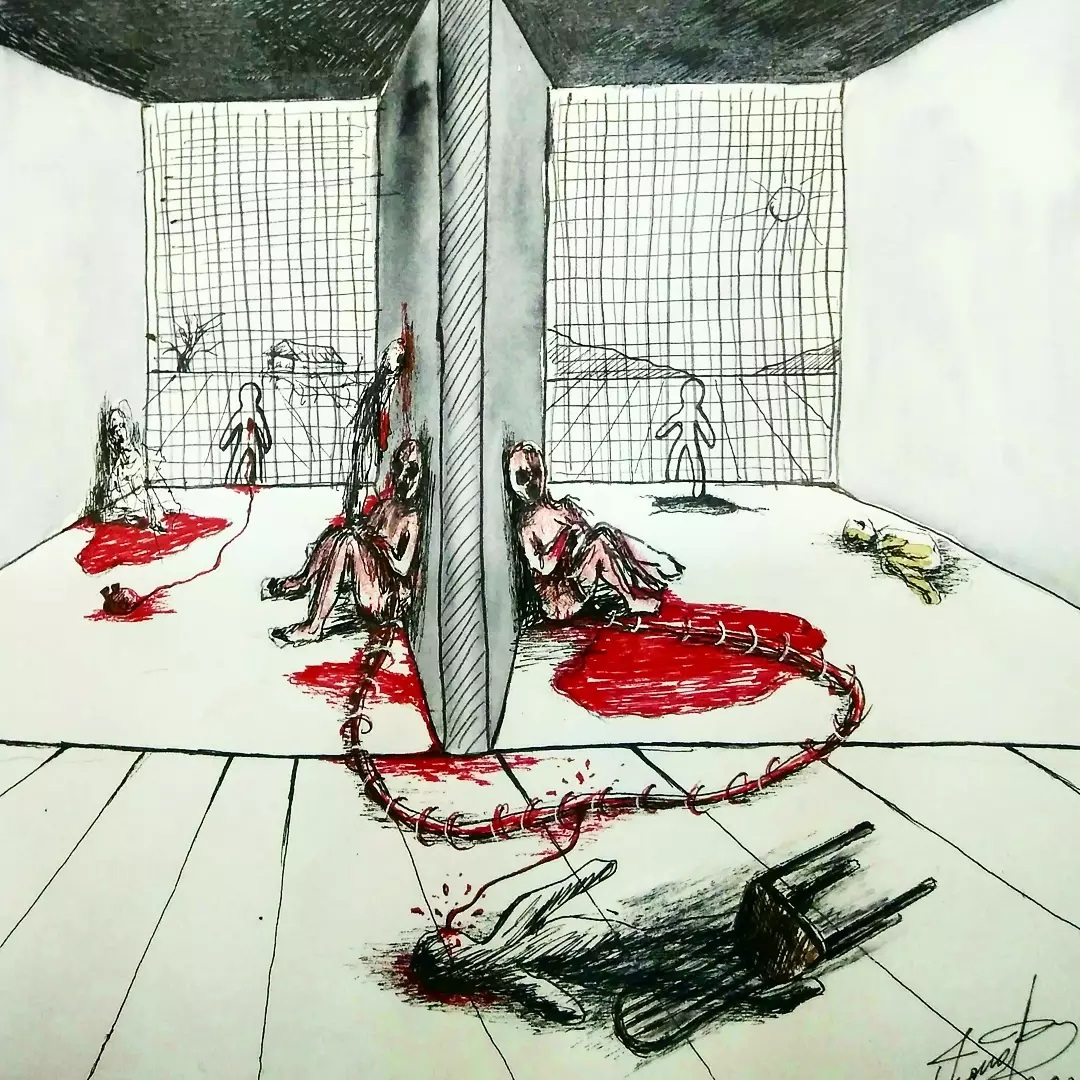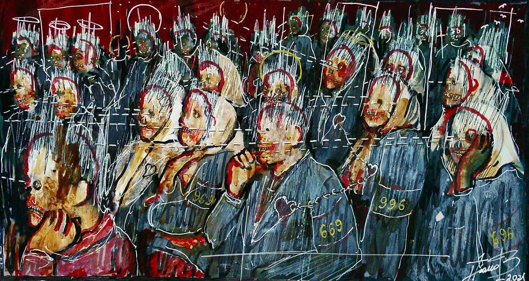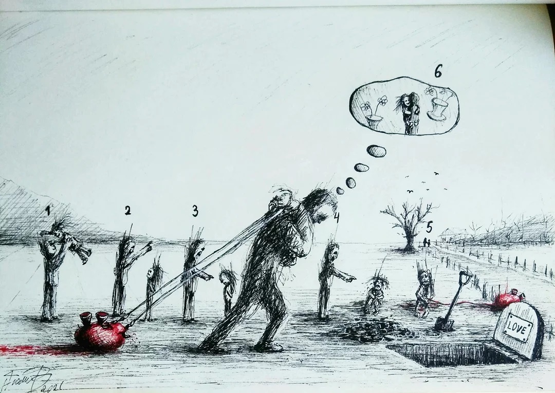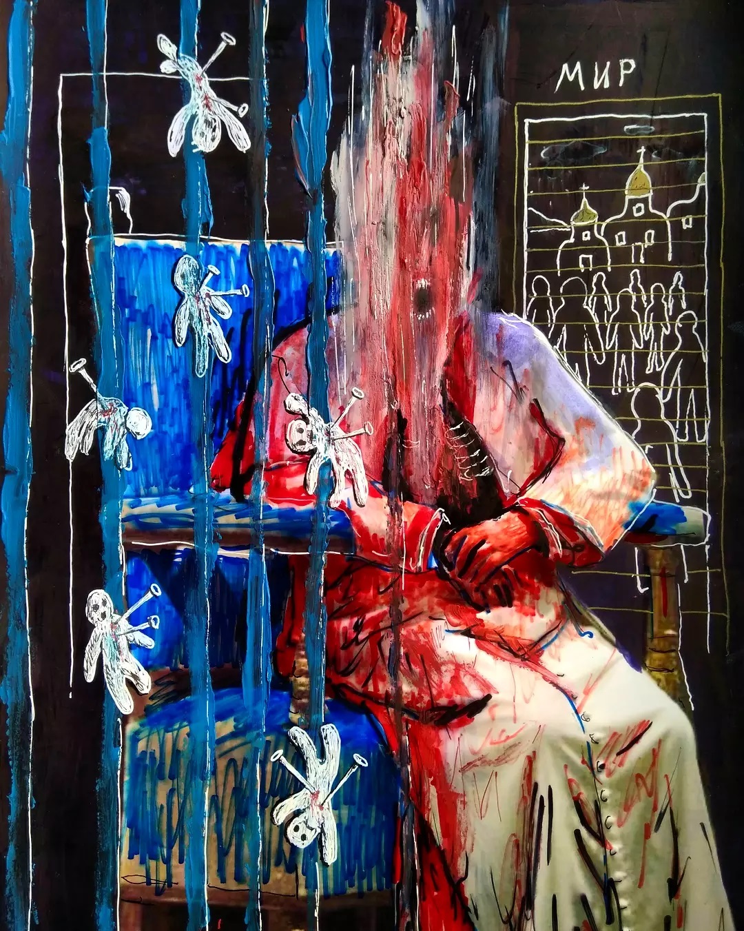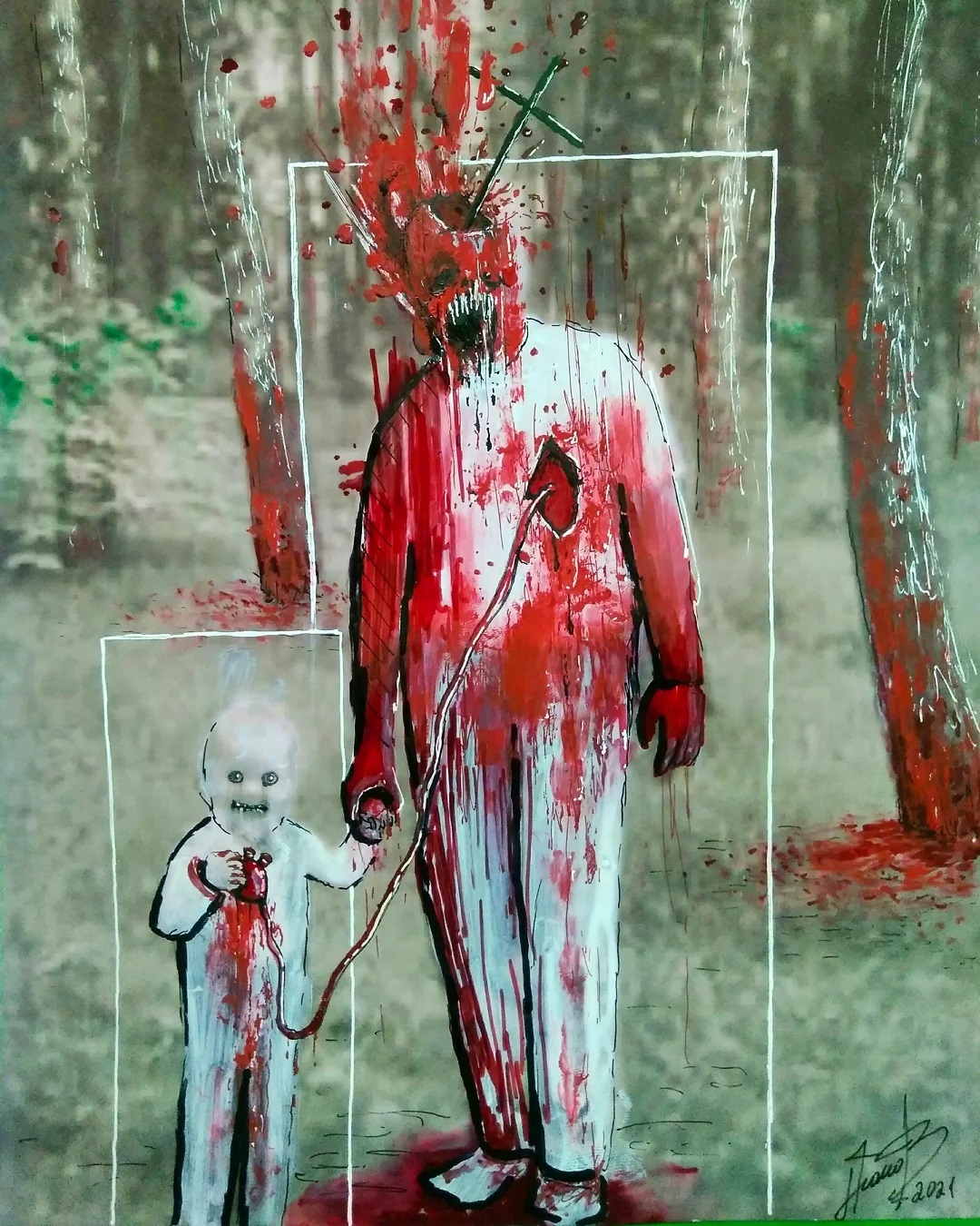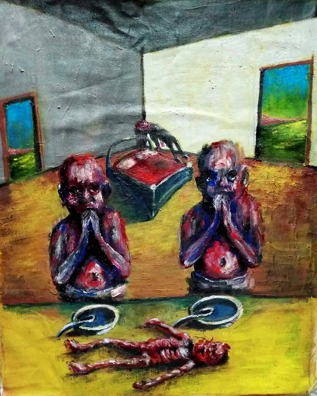 “Welcome to my world! There is no falsehood or anything superfluous here. I paint my life as it is, throwing a part of myself and my moments from life onto canvases… Pain and constant depression is the only thing that taught me to create…” he writes.