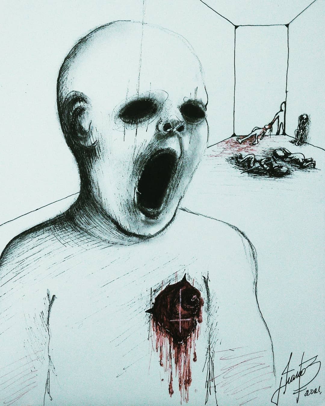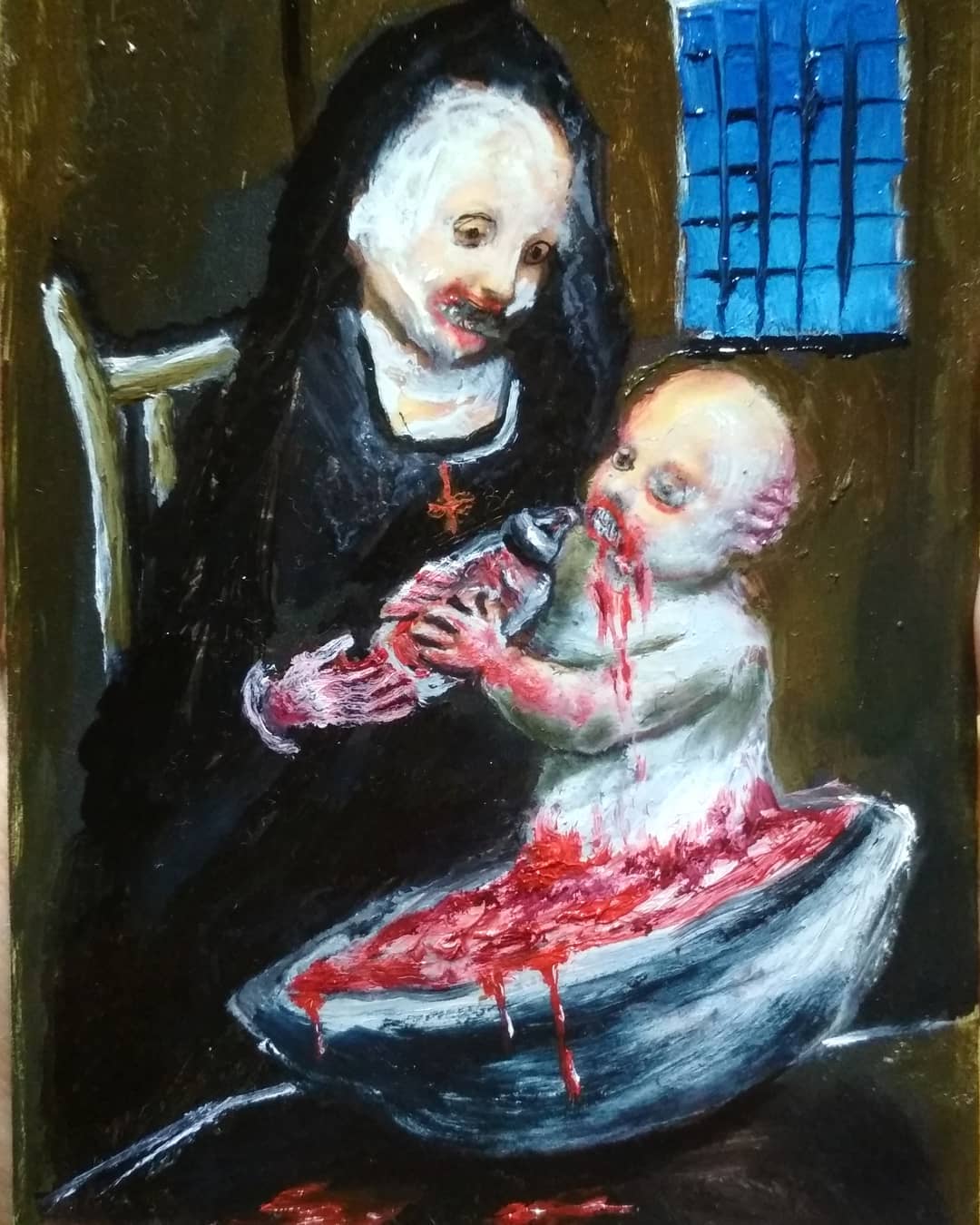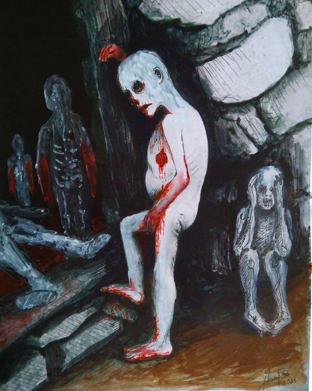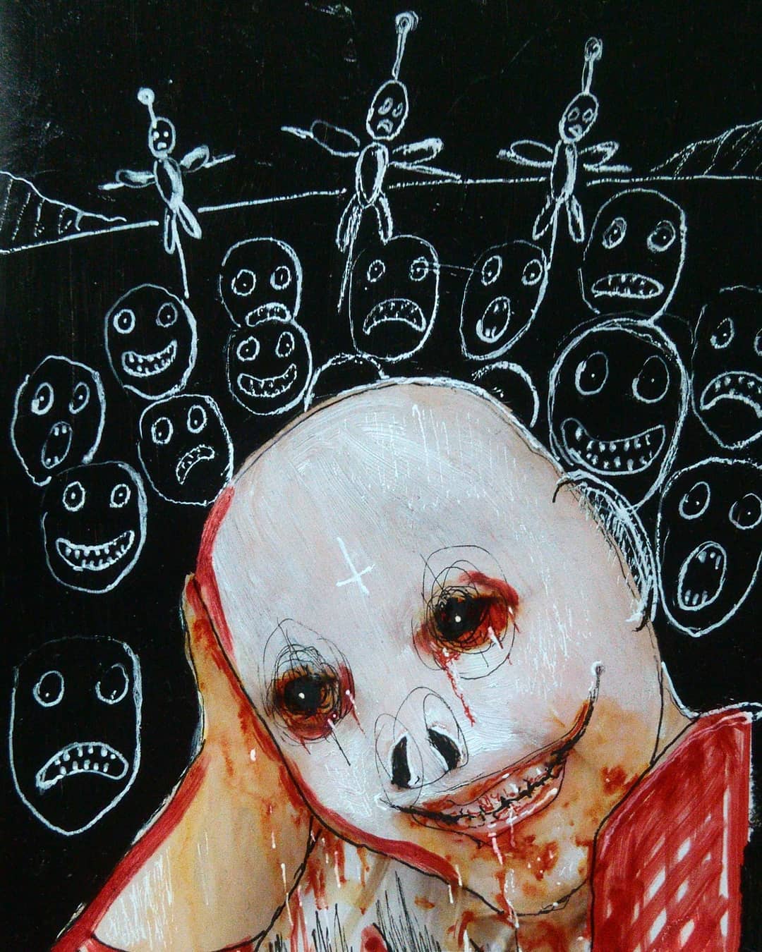 “Welcome to my world! There is no falsehood or anything superfluous here. I paint my life as it is, throwing a part of myself and my moments from life onto canvases… Pain and constant depression is the only thing that taught me to create…” he writes.