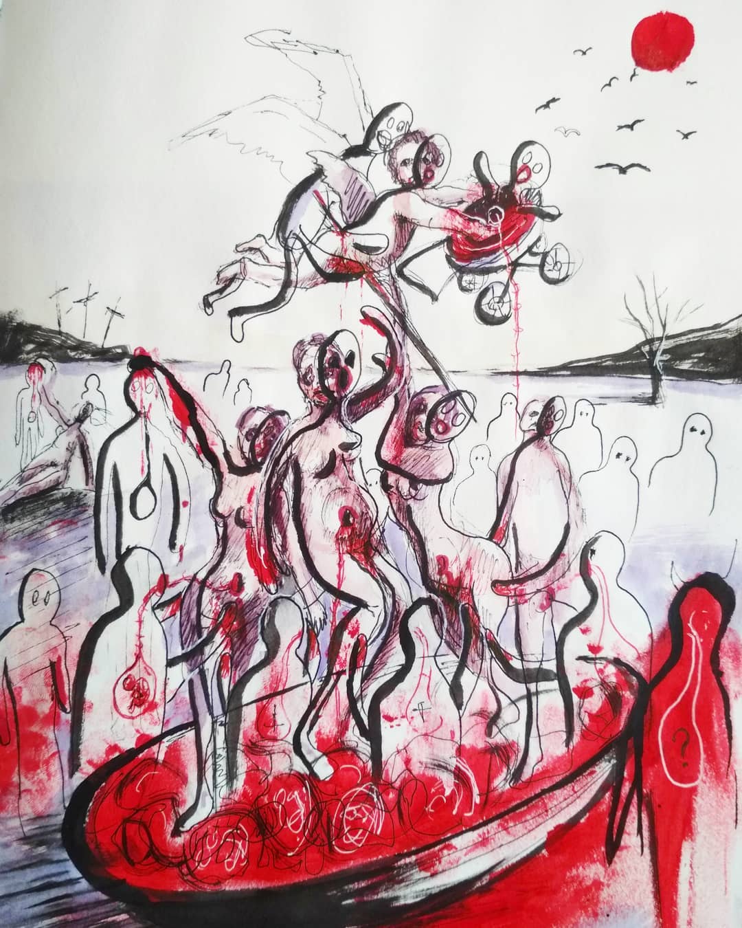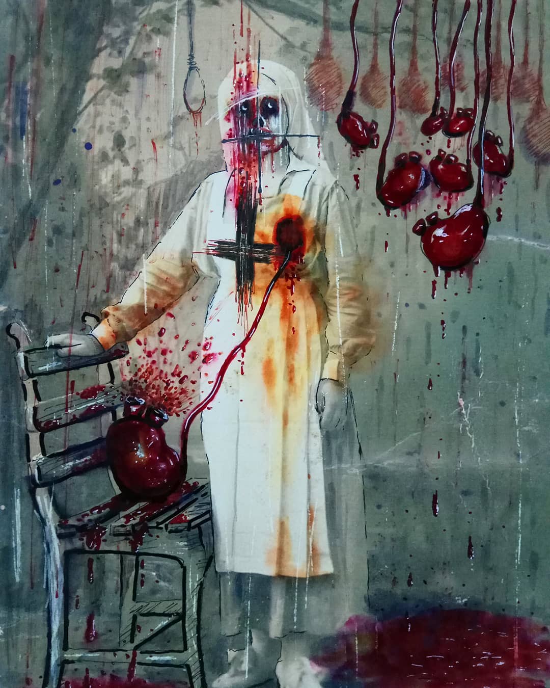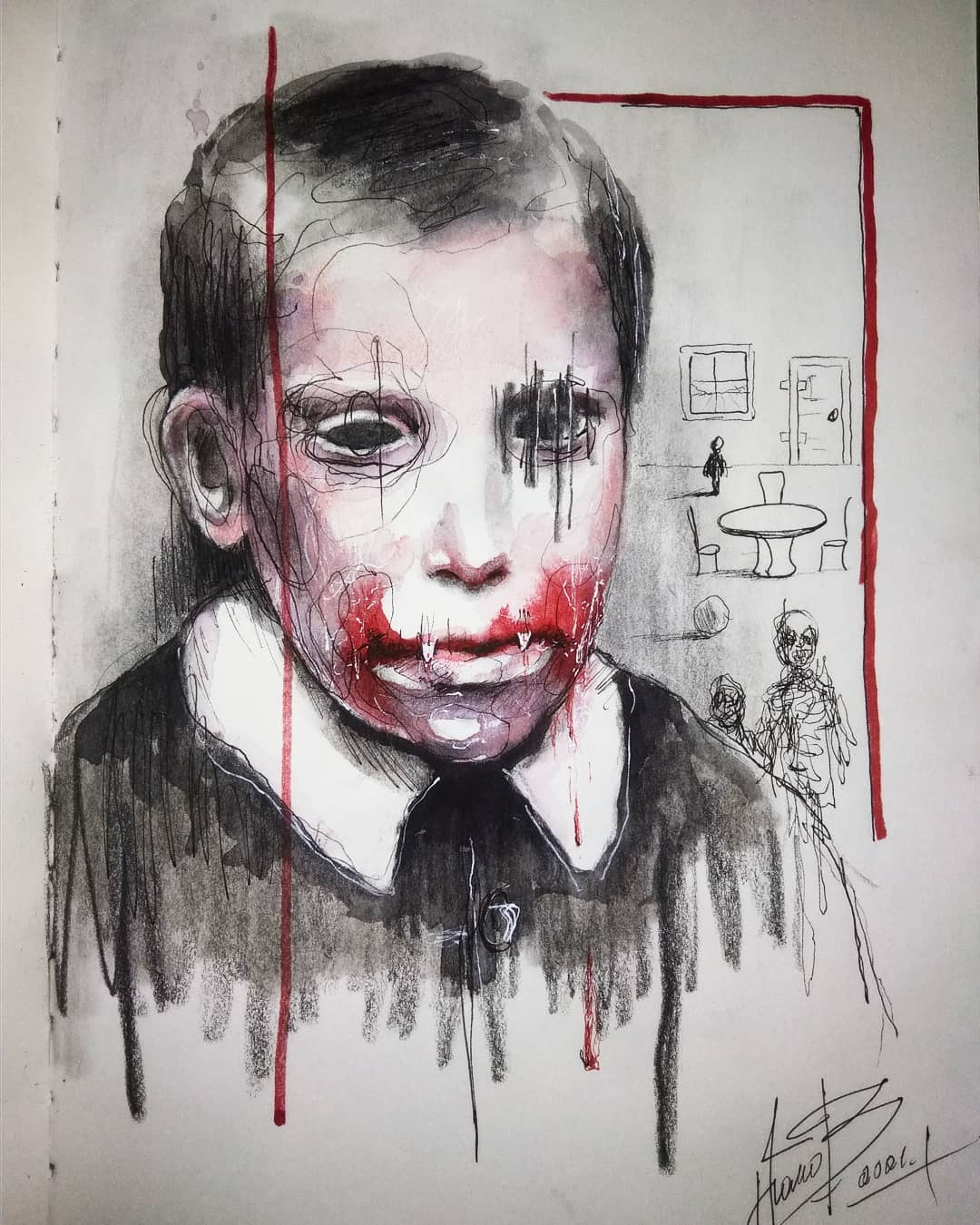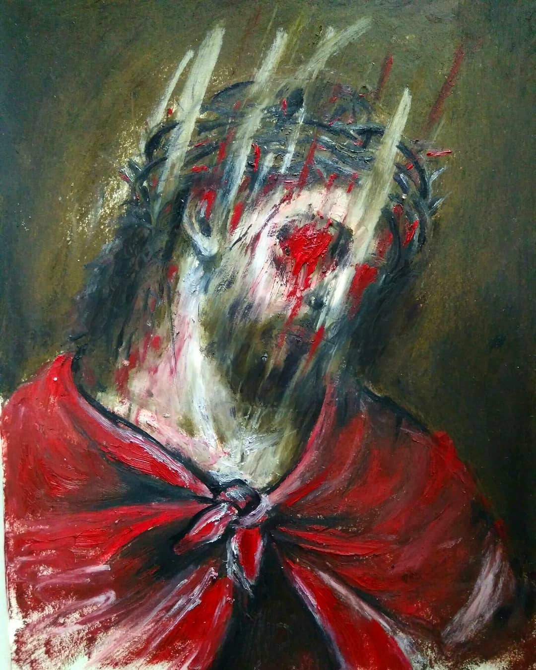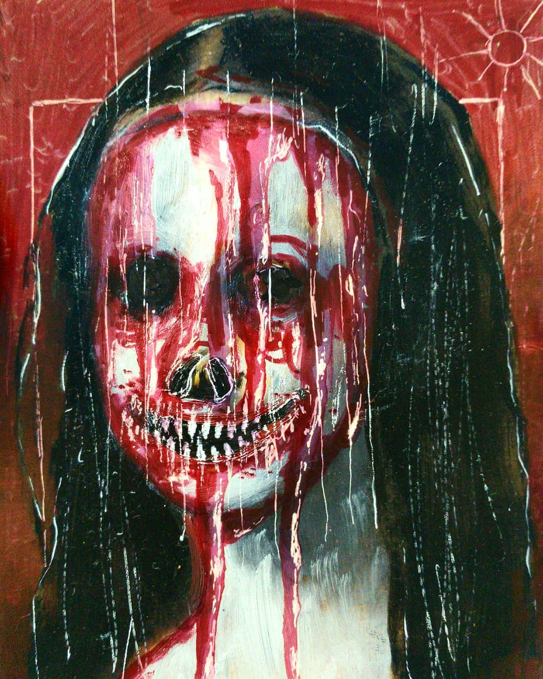 “Welcome to my world! There is no falsehood or anything superfluous here. I paint my life as it is, throwing a part of myself and my moments from life onto canvases… Pain and constant depression is the only thing that taught me to create…” he writes.