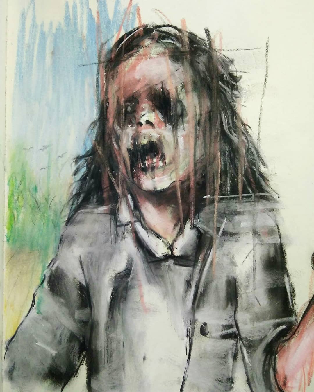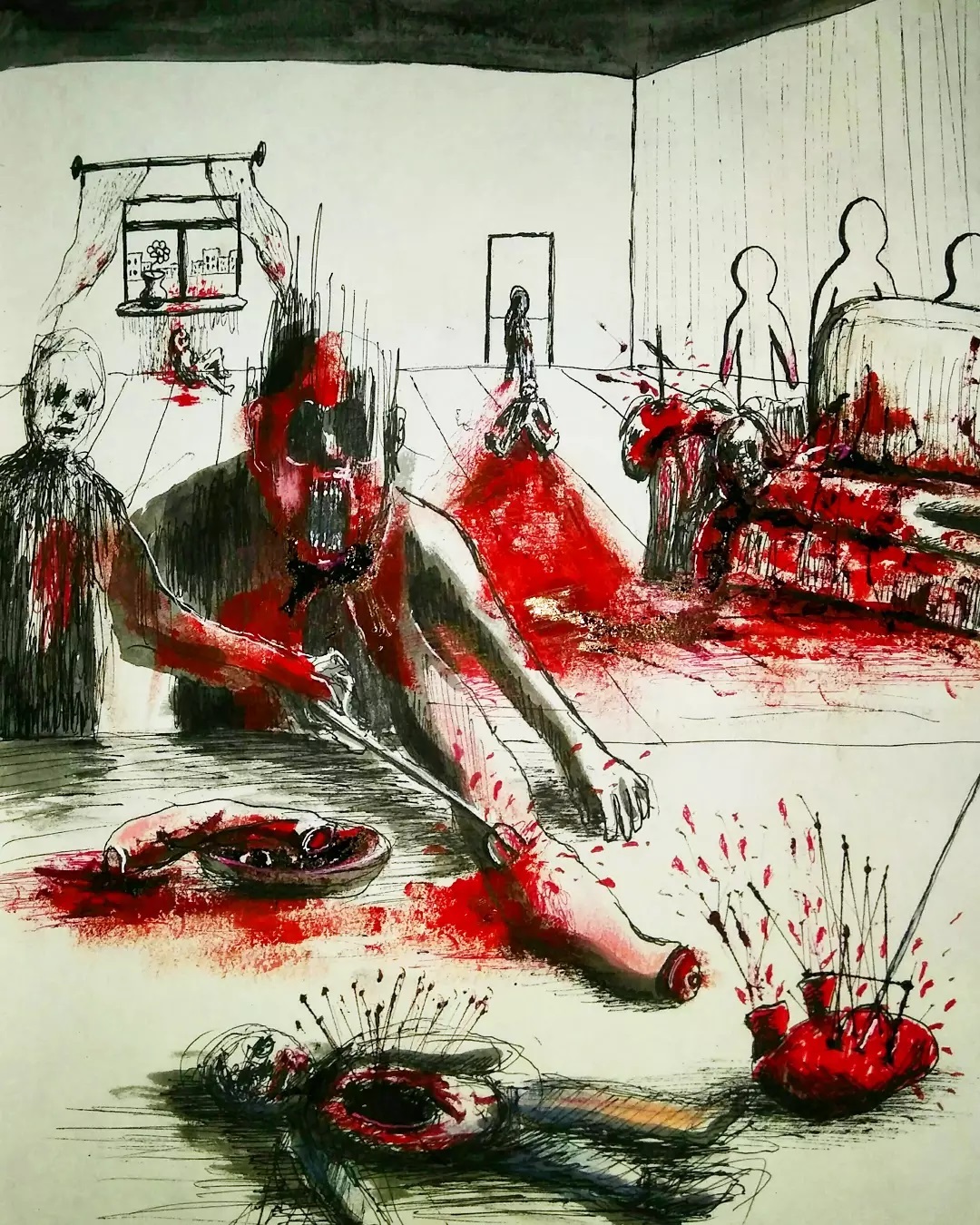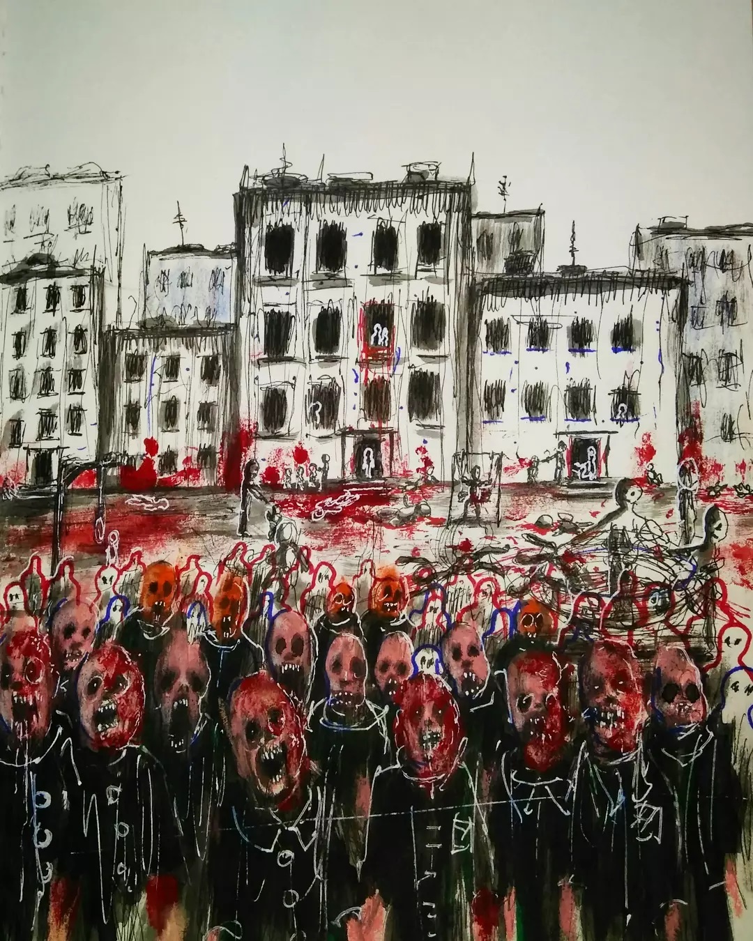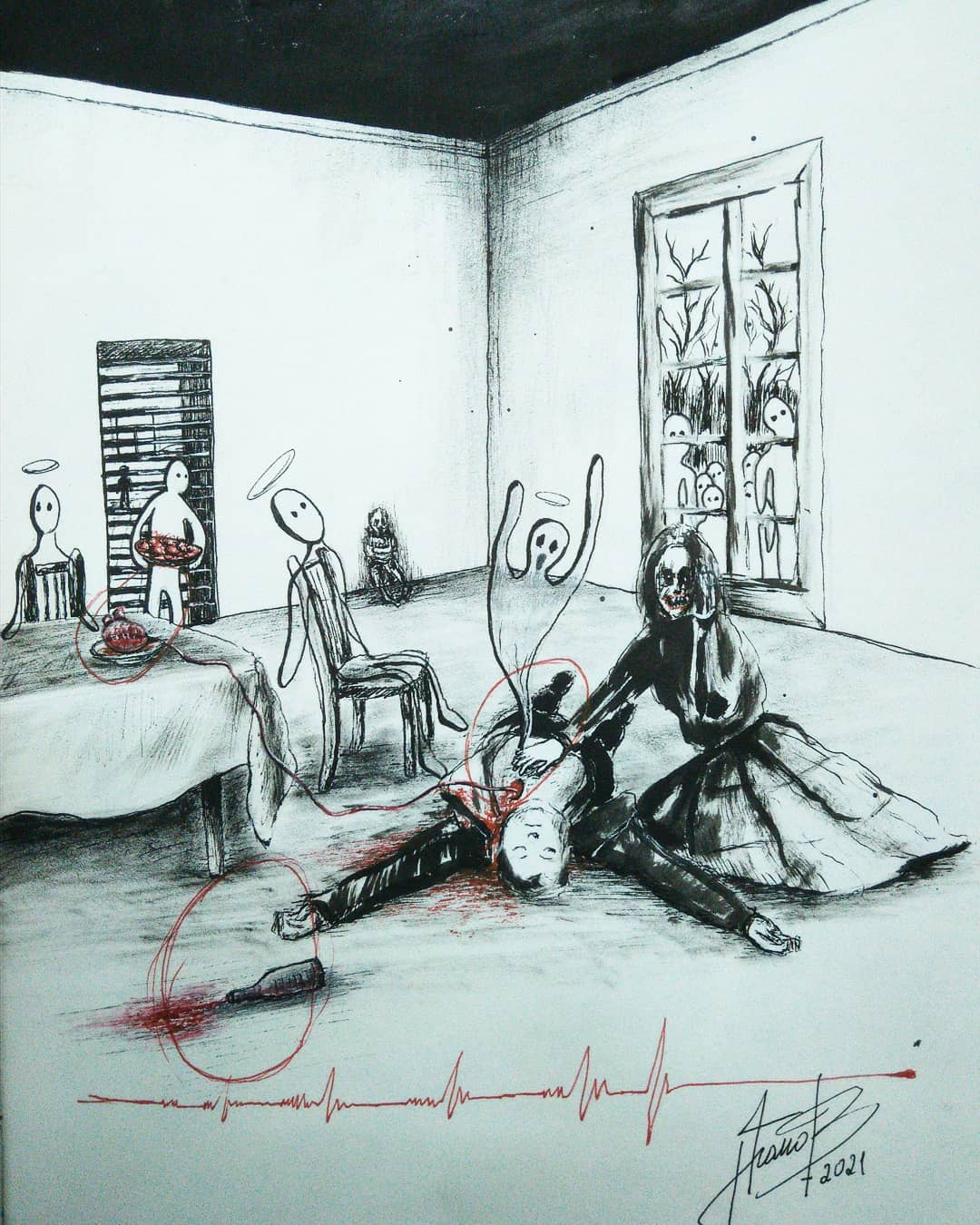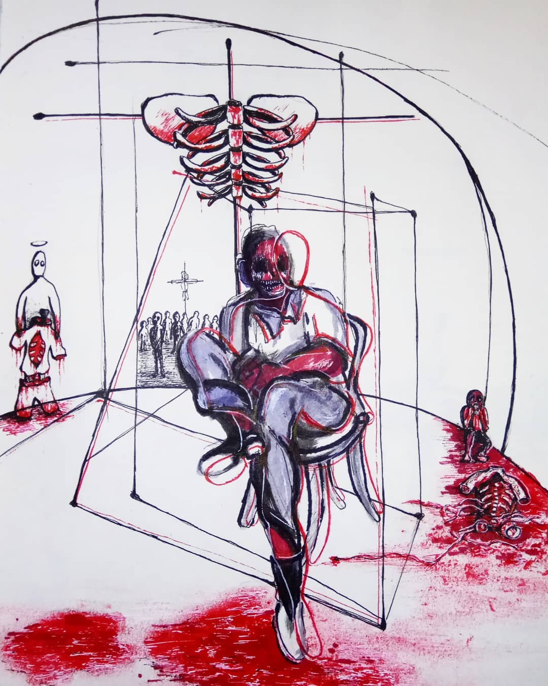 “Welcome to my world! There is no falsehood or anything superfluous here. I paint my life as it is, throwing a part of myself and my moments from life onto canvases… Pain and constant depression is the only thing that taught me to create…” he writes.
