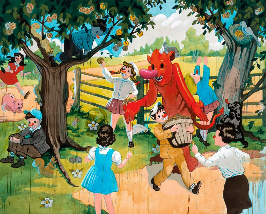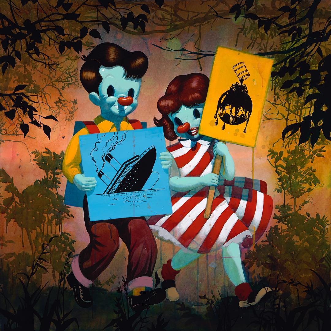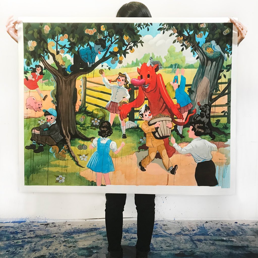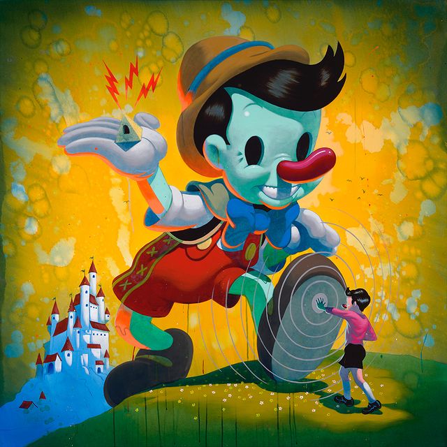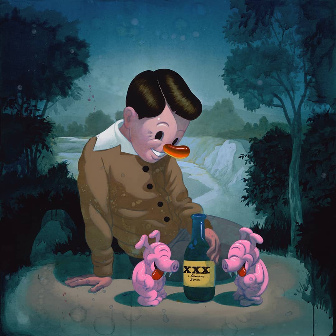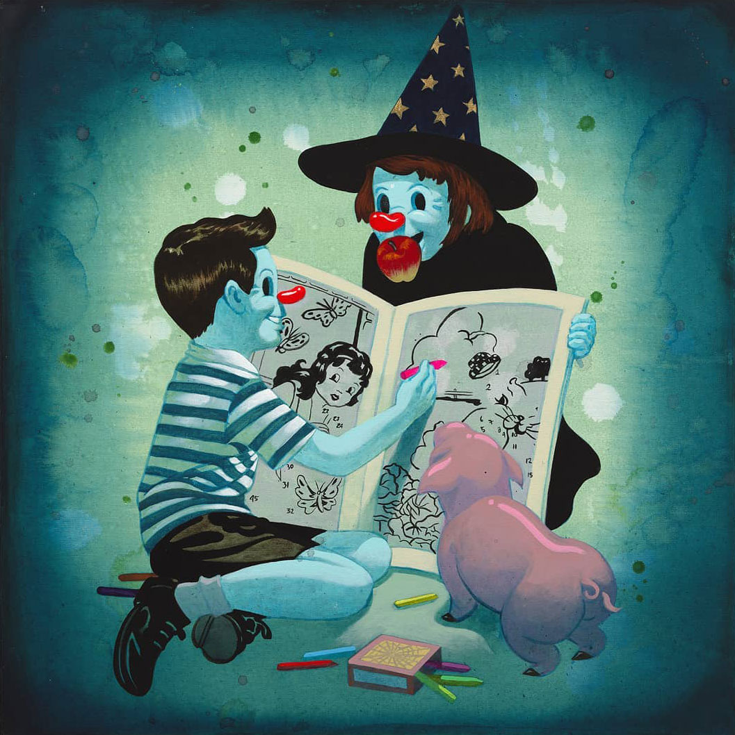 A prolific self-taught painter who adeptly fuses popular culture references with old master painting, Victor is connected with the low-brow and Pop Surrealism scene that has its roots in California in addition to the global New Contemporary Art and Urban Art movements.