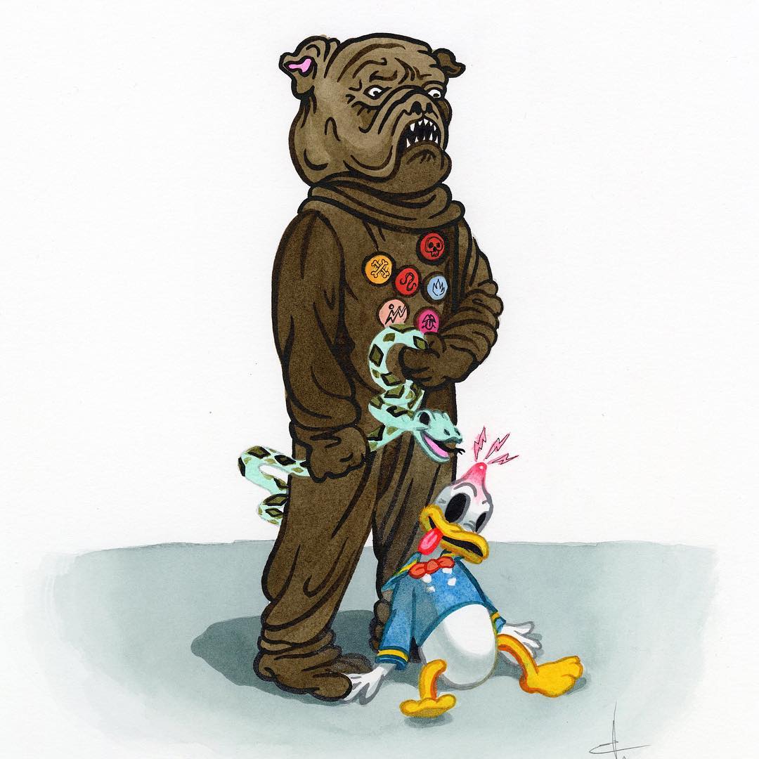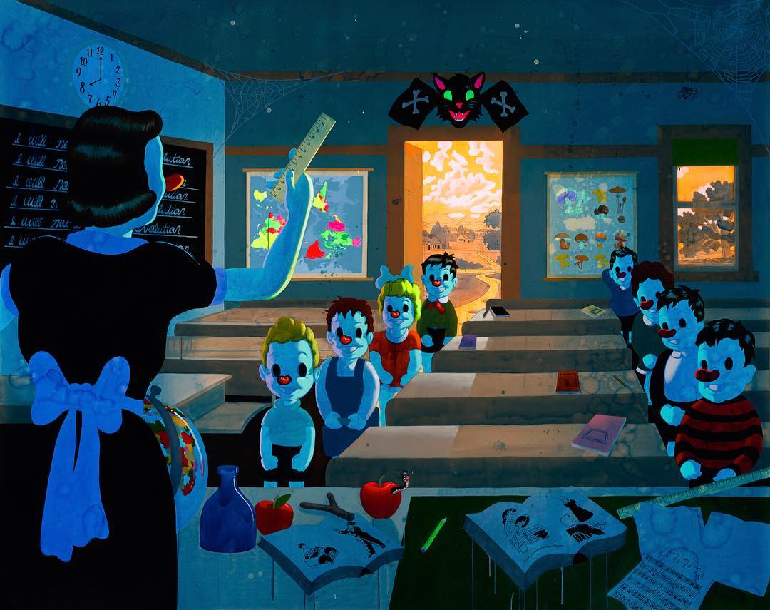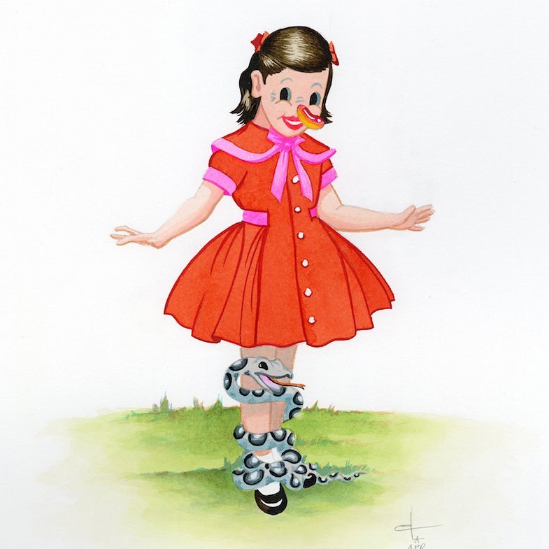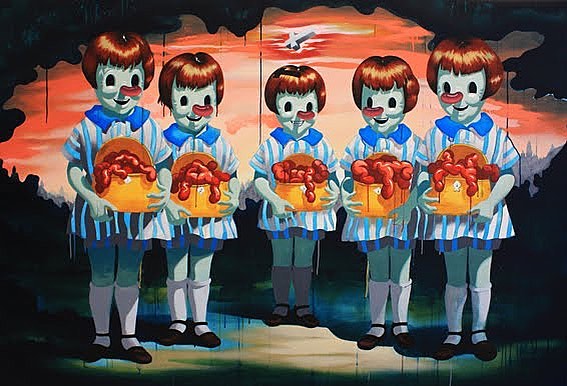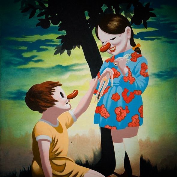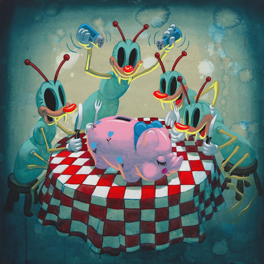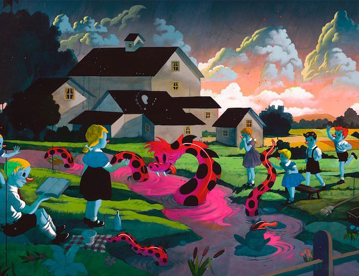 A prolific self-taught painter who adeptly fuses popular culture references with old master painting, Victor is connected with the low-brow and Pop Surrealism scene that has its roots in California in addition to the global New Contemporary Art and Urban Art movements.