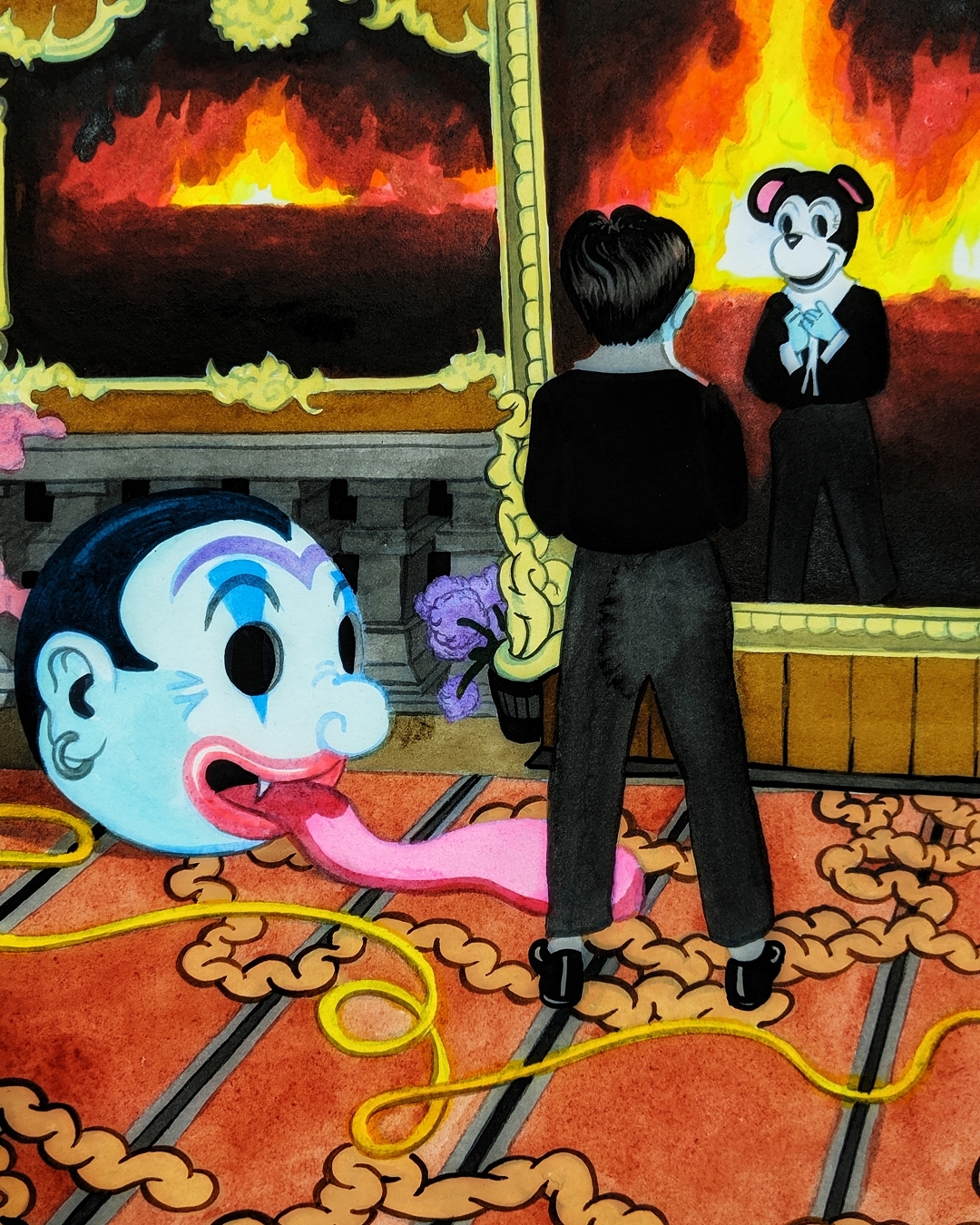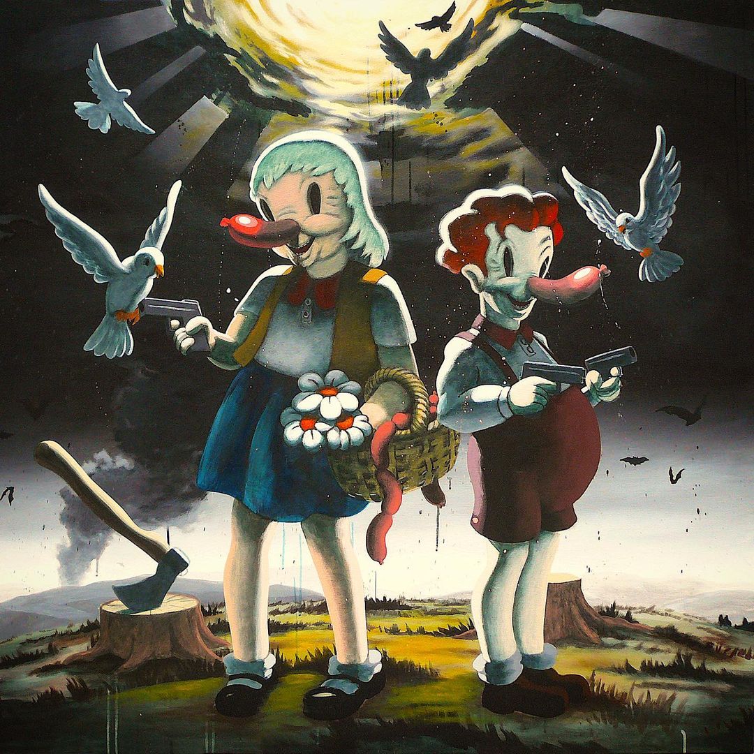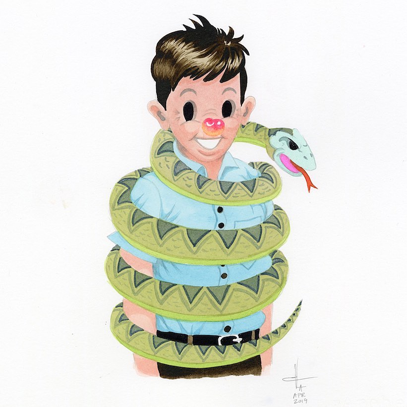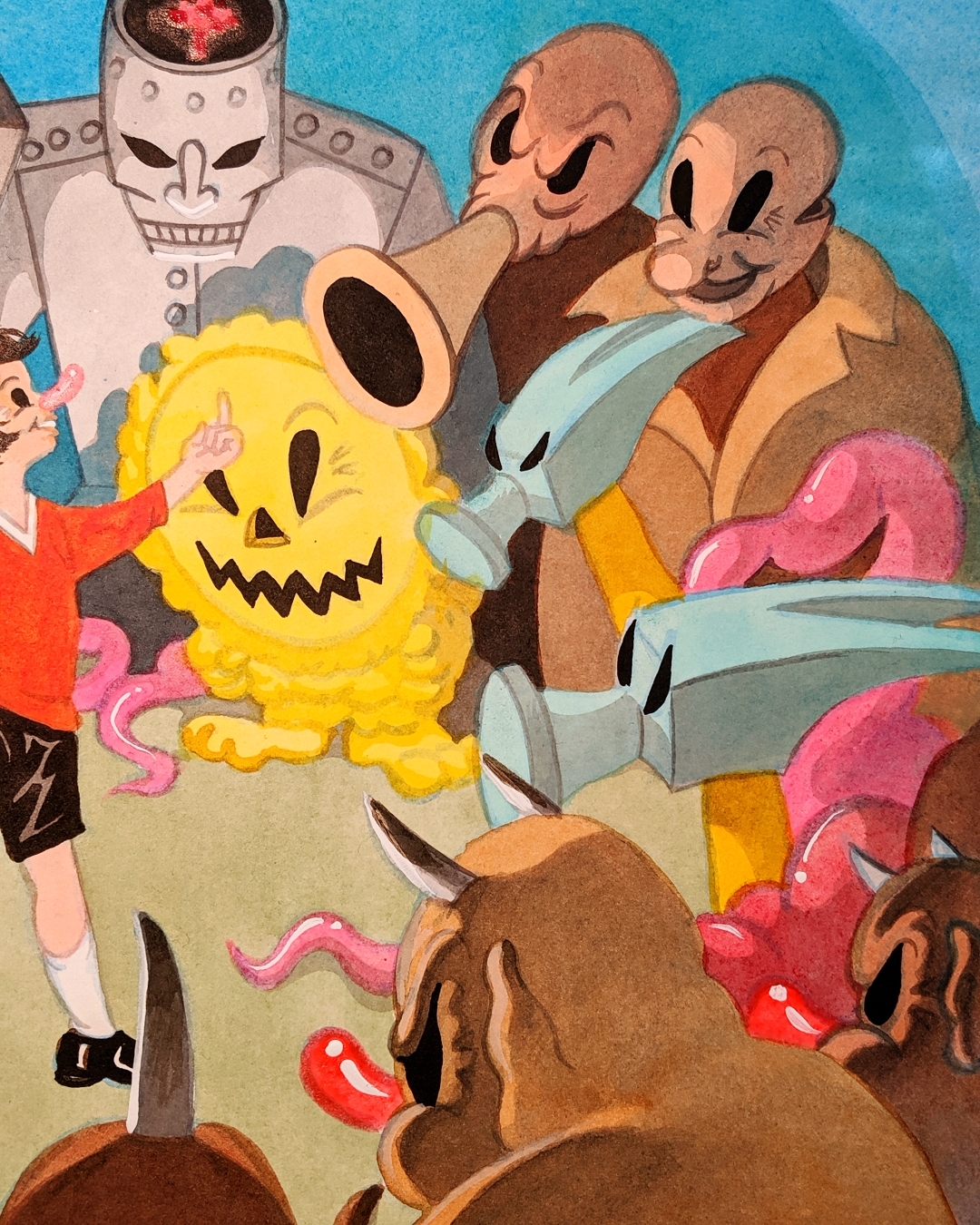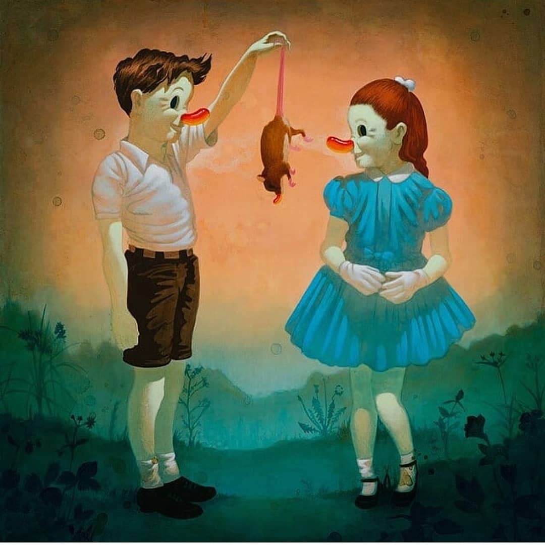 A prolific self-taught painter who adeptly fuses popular culture references with old master painting, Victor is connected with the low-brow and Pop Surrealism scene that has its roots in California in addition to the global New Contemporary Art and Urban Art movements.