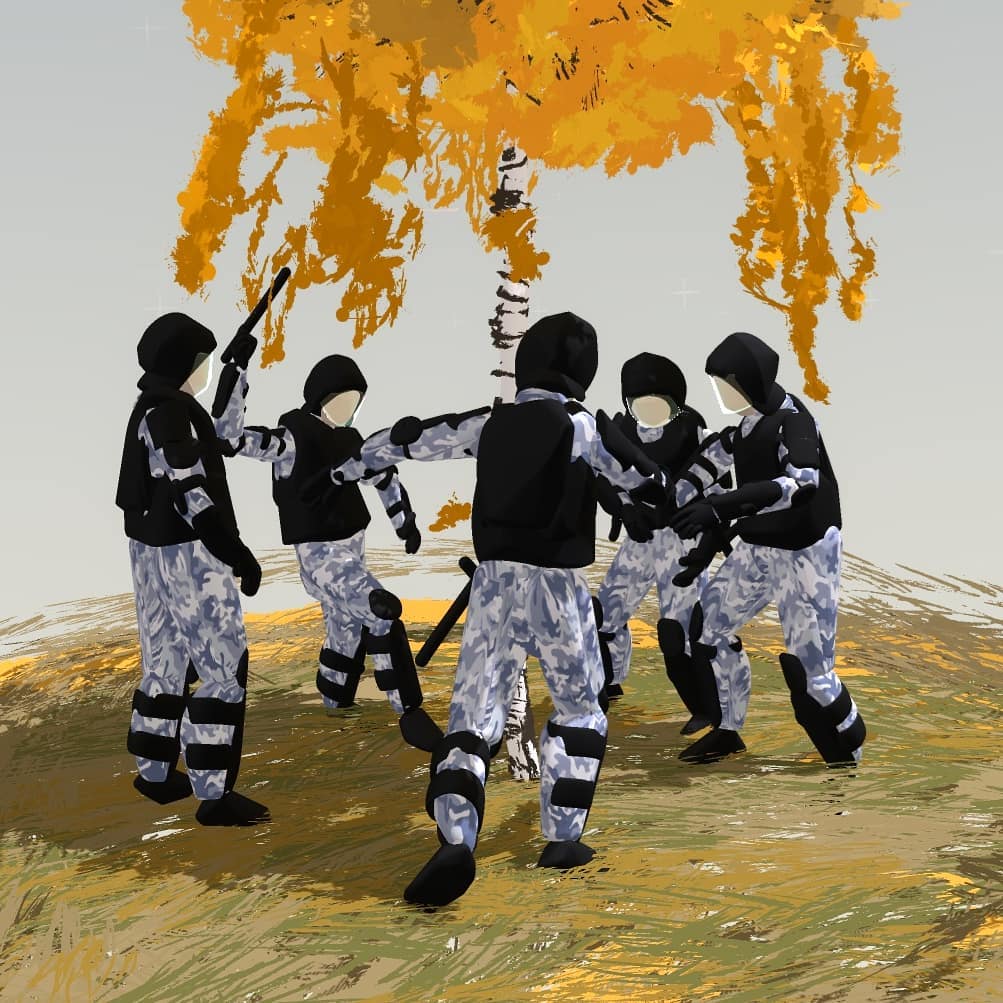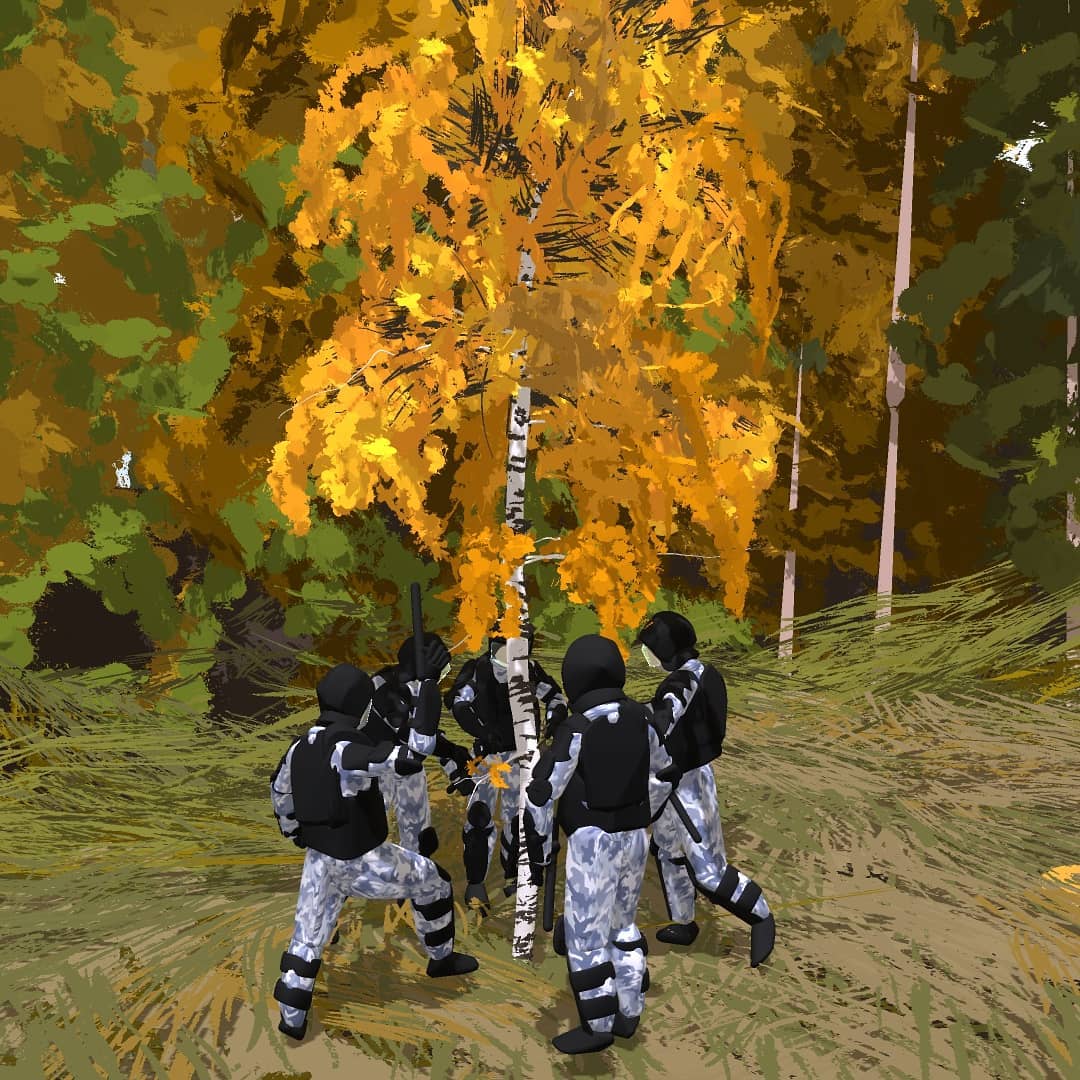 When I’m inside the virtual reality, I take out all my refs, put them somewhere next to me and just start moving my hand with the brush and color I need. Making the first smear excites me every time. I draw object by object, group elements and put them on their places, which is very convenient and easy, this process is a lot like playing with lego.