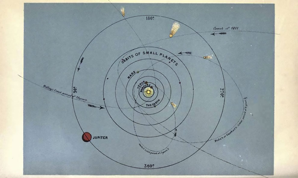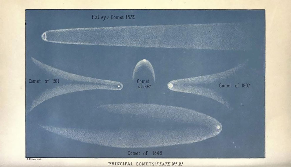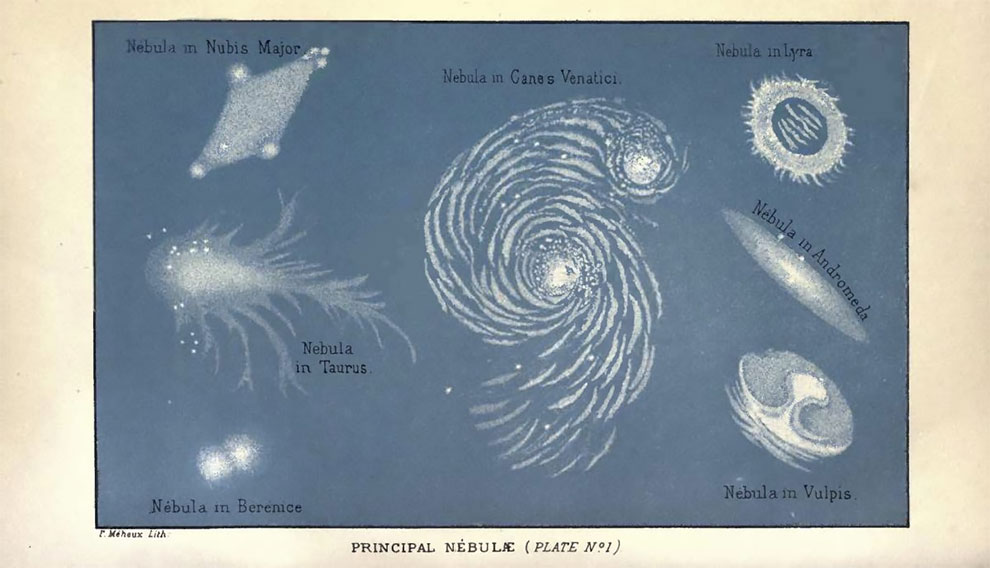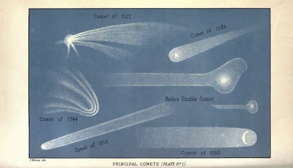 These illustrations arrive from the guide Astronomy (posted 1875) by Jean Pierre Rambosson (1827-1886).