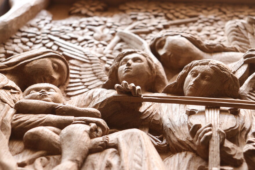 Now a several phrases about the wooden panel. Product oak wood. It took 7 months to build this panel. In reality, I could slash a panel 2 times as rapid, but sometimes the inspiration remaining me, and I experienced to leave this job and do a little something else. This is the most difficult occupation I’ve at any time finished. I feel you know oak is a challenging wooden. Fingers got worn out quite swiftly. There are numerous individuals on the panel, a ton of modest particulars. I had to be quite, really watchful.