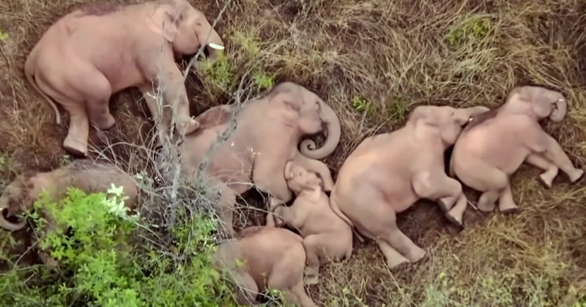 Check out as China’s wandering elephants consider an lovable nap together in a patch of forest.