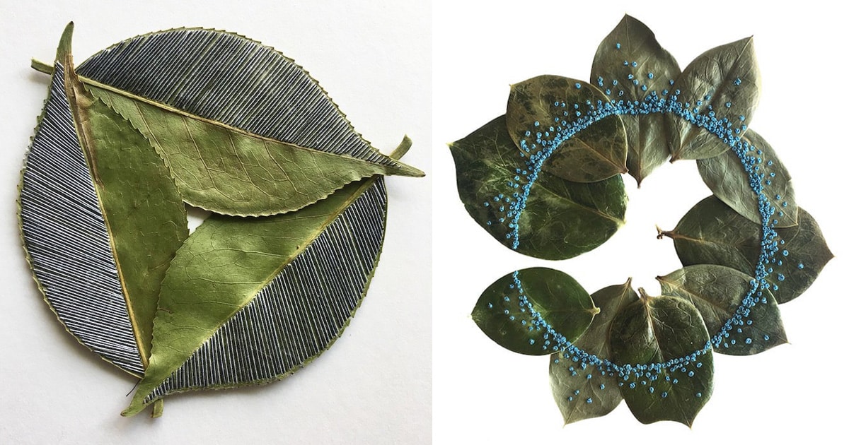She stitches geometric and summary models onto located leaves, producing a connection in between persons and nature.