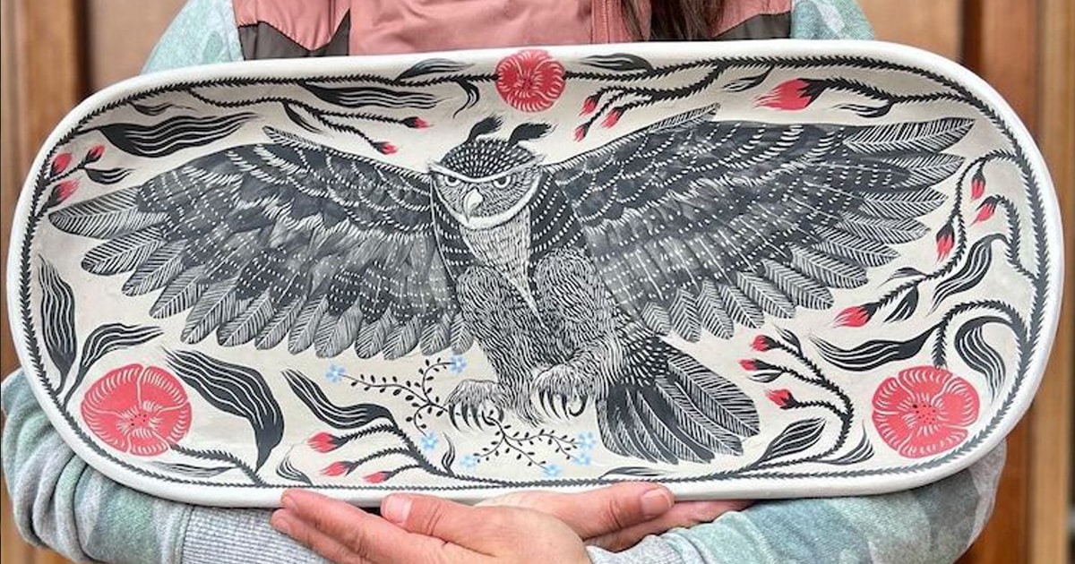 From majestic flying owls to fluffy foxes, her art options an array of critters ordinarily framed by a border of flora. Whilst the characters vary in each generation, Sutton’s pieces are united by a exclusive aesthetic and confined coloration palette of black, yellow, crimson, and blue. While black serves as the principal colour, other hues purpose as embellishments to the bouquets blossoming on the vines. Coupled with the white ceramic, this combination success in plates and bowls that are visually arresting to look at.