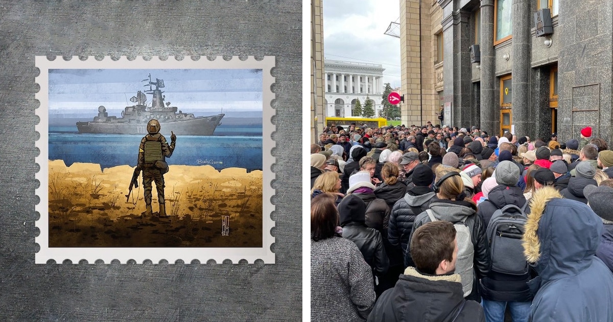 1 million stamps were printed and Ukrainians waited in line for hours to get their fingers on them.