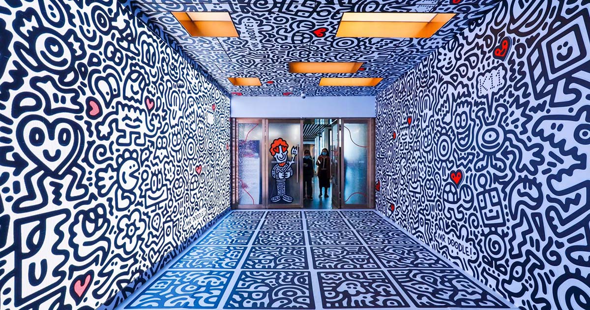 British artist Sam Cox results in bold, densely-packed drawings beneath the moniker Mr. Doodle. Manufactured up of symbols, people, shapes, and other motifs, these sprawling scribbles are as legendary as their creator. And although it may be difficult to extract what is heading on in these clustered pieces, most of their inspiration derives from Mr. Doodle’s life. His very first solo exhibition Mr. Doodle in Enjoy has debuted at Shanghai K11 Artwork Museum and chronicles the artist’s romance journey.