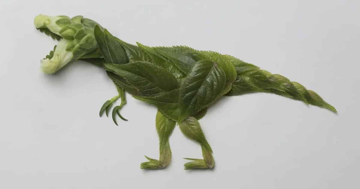 Amazingly, Inoue manages to convey the essence of all these dinosaurs with his restricted set of materials. The pointy ridges of a leaf, for case in point, grow to be the sharp enamel, or even the jagged edges of the creature’s backbone. Likewise, by lining up leaves in descending size, he can effortlessly make a long swinging tail.