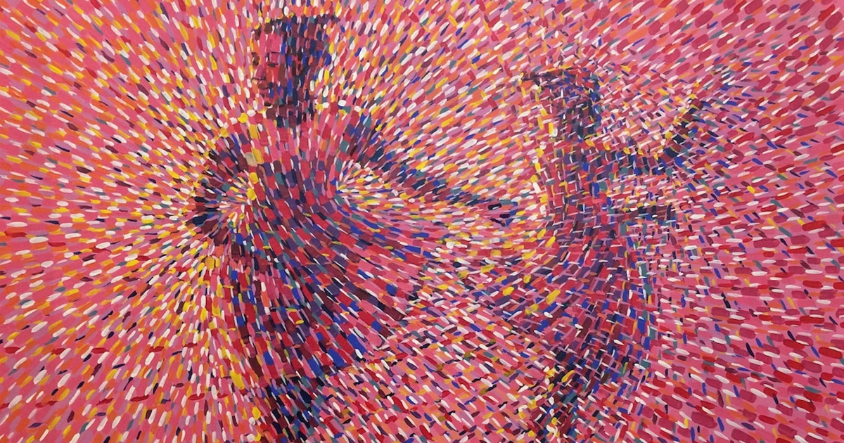 Ghanaian artist Betty Acquah captures dancing and transferring figures in her series of colourful paintings.