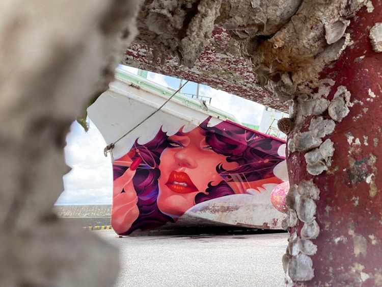 Japanese artist ONEQ painted the aspect of an outdated ship with a breathtaking mural.