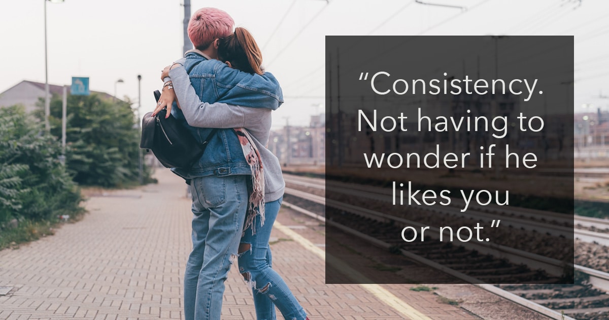 “Consistency. Not getting to marvel if he likes you or not. It feels normal and you really don’t have to wait 1000 several years to reply to textual content. F*** that. If you never come to feel that way, then do not hassle. It is a squander of energy and time. You’ll just be upset.” – hippycutie
