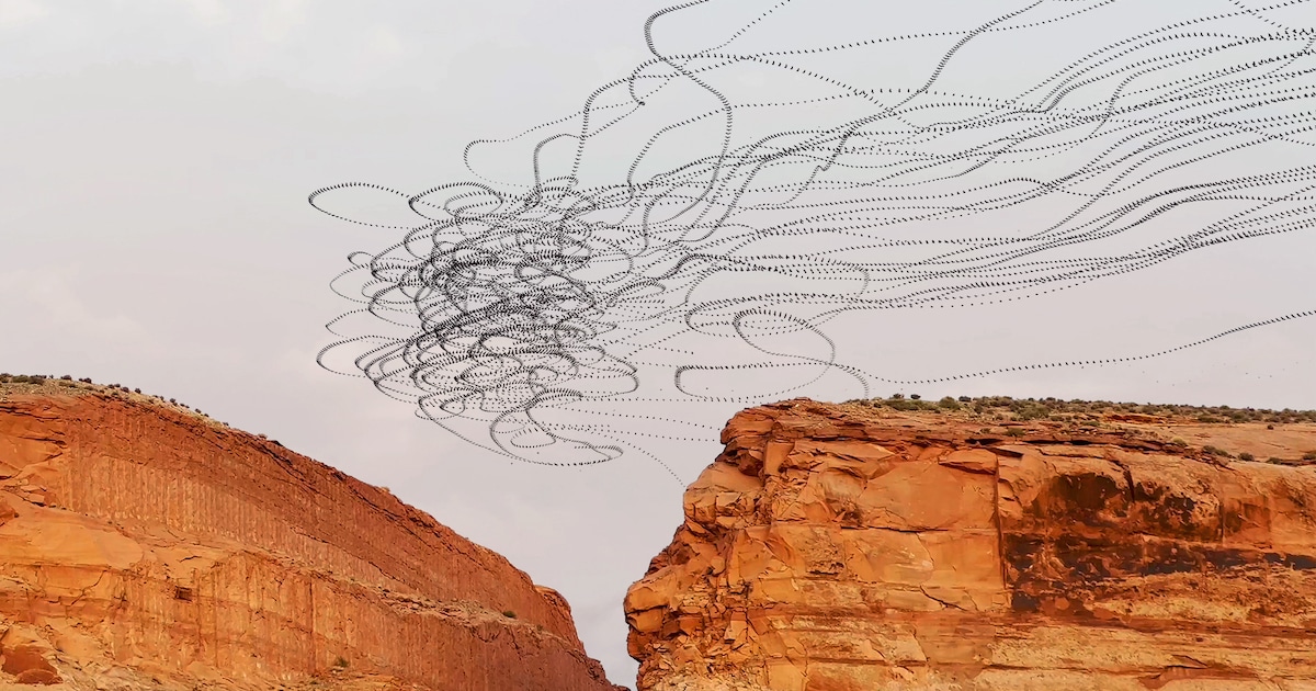 Mitsch’s images capture the mesmerizing trails of various airborne creatures—birds, bats, and even insects—as they swirl and flit far above the Earth. Their flight patterns, when combined in these composite photos, create abstract forms and linear shapes so compelling that they seem as if they were carefully composed by the winged creatures themselves.