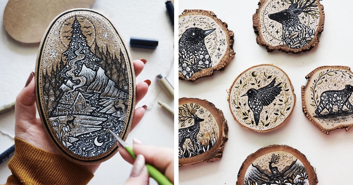 Enchanting illustrations of woodland animals and leafy habitats uncover their residence on compact slices of wooden. Greece-based artist Melpomeni Chatzipanagiotou pairs her adore of portraying mother nature with natural and organic resources in an ongoing sequence of drawings and paintings on wood. These small tactile items depict a variety dreamy scenes encompassed by a border of genuine lumber.