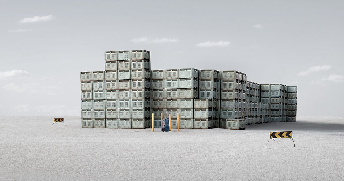 Australian photographer Allan Koppe took home the $2,000 grand prize and the Minimalist Photographer of the Year title with his series called On Route. The captivating, semi-monochromatic images focus on areas of transit—roadways and vast lots—notably devoid of any means of transport. His minimal photographs communicate a narrative through the line and form of their solitary subjects, with the occasional cameo of an expressive traffic sign.